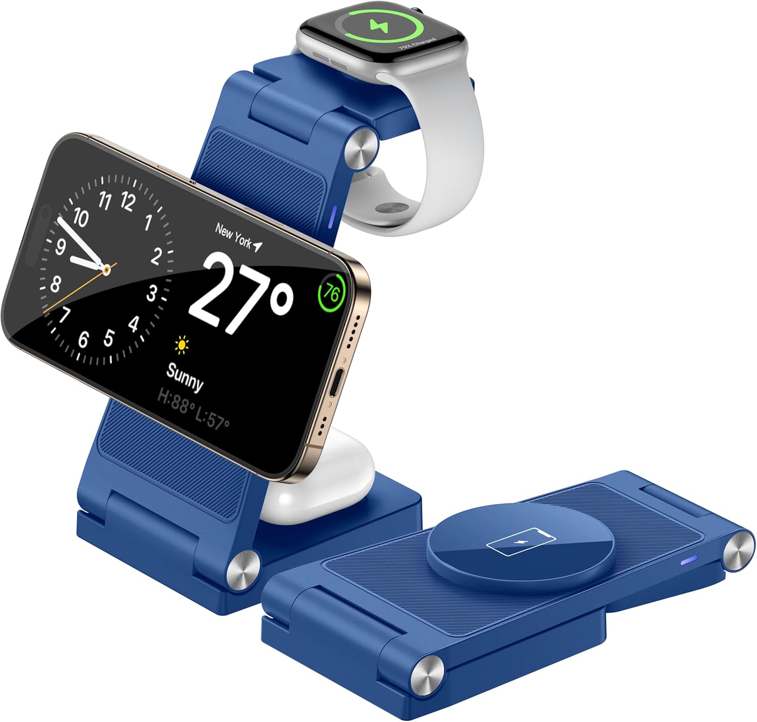 - 2025 Upgraded 3 in 1 Foldable Wireless Charger: The charging station for multiple devices, compatible with iPhone, iwatch, AirPods simultaneously. It is suitable for all iPhone 12-16 series. Compact size, well built, fast charging, space-saving, exactly what you need. Gifts for people who travel for work OR international travelers
