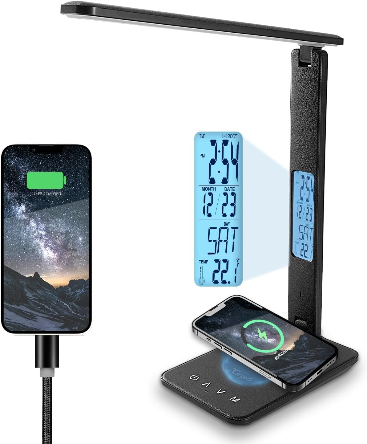 Desk lamp,LED Lamp with Wireless Charger,USB Charger Port,Touch Control,3 Color Modes,5 Brightness Levels,Eye-Protecting Table Lamp,Led Lights for Bedroom,Home,Office,Black