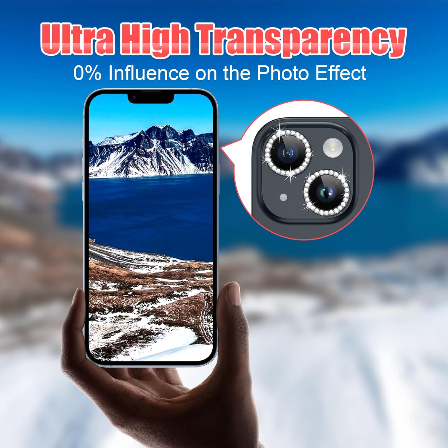 AGVEE 3+3 for iPhone 14 6.1" / 14 Plus 6.7" Camera Lens Protector, Bling Diamond & Bling Glitter Metal Ring 9H Tempered HD Glass Camera Protector Cover Film, Bling-Black