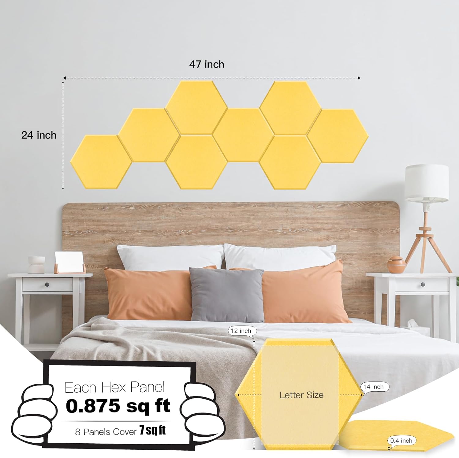 Mollywell Hexagon Acoustic Panels, High Density, Soundproofing, Decorative Noise Reduction Felt Wall Tiles for Ceilings, Home Office & Gaming Room (Yellow), 14x12x0.4 Inch