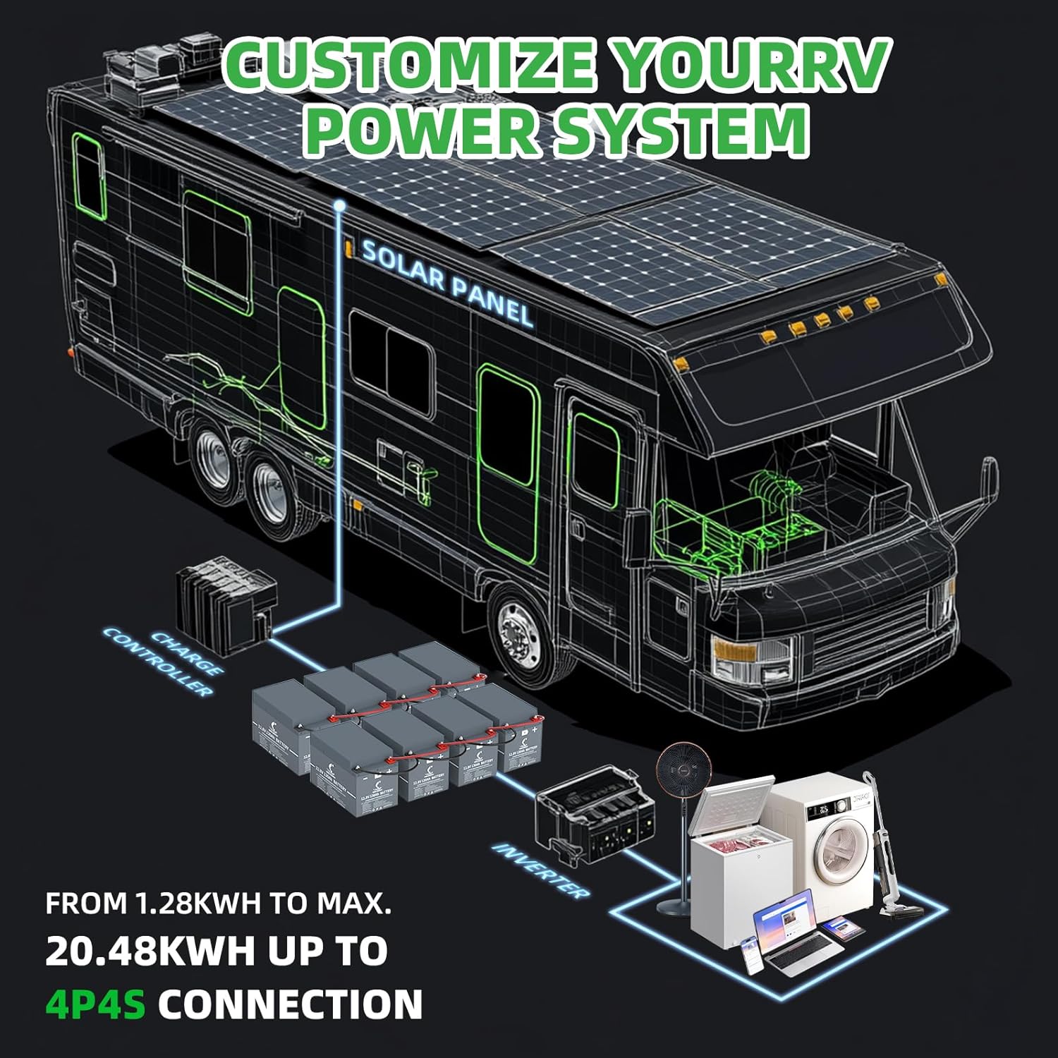 - 【Remarkable Performance】High-performance True A+ Cells*4 are internally tightly connected and can be serviced and replaced.4 full battery holders made of flame retardant plastic provide a more stable space structure, better heat dissipation and better working conditions for these 3.2V 150Ah batteries.