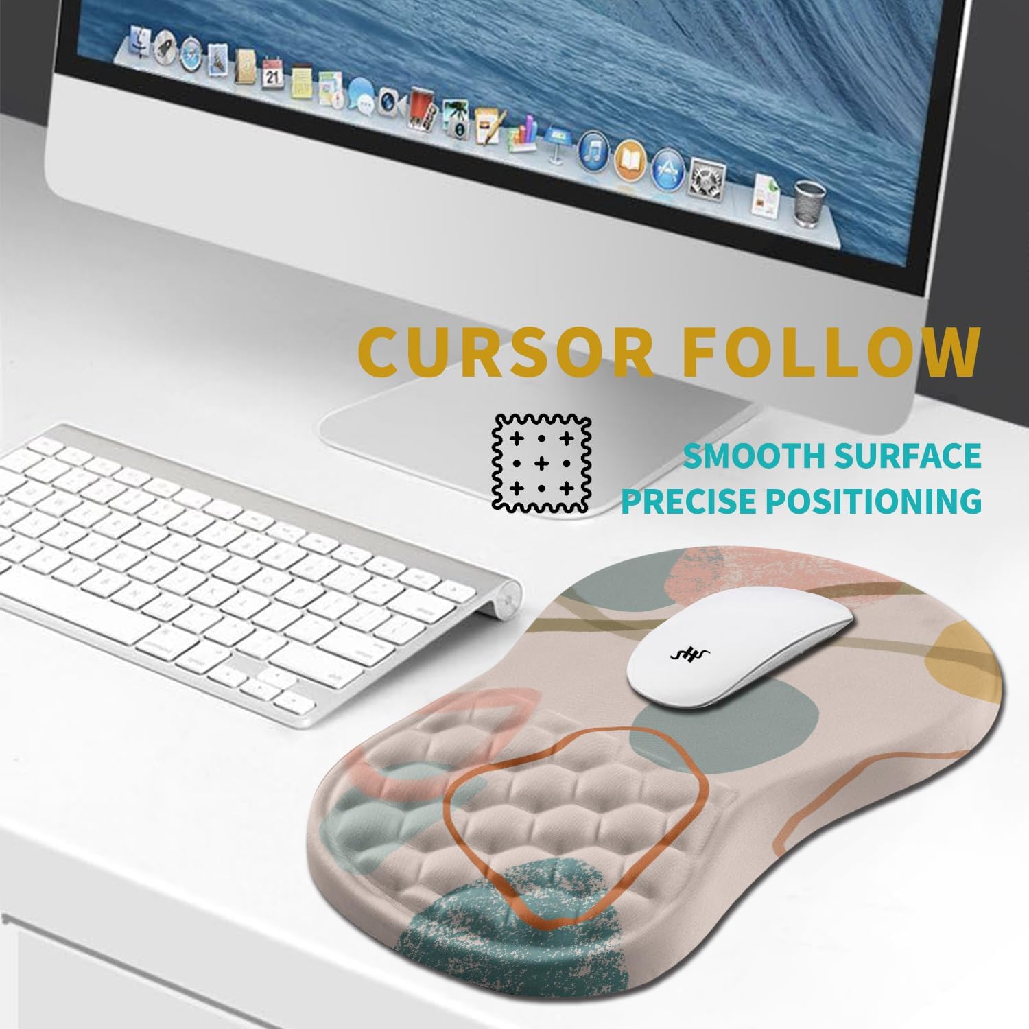 Hokafenle Ergonomic Mouse Pad Wrist Support, Wrist Rest Mousepad for Carpal Tunnel Pain Relief with Integrated Memory Foam Slope Massage Bulge (11.8x7.9 inch,Abstrac Art