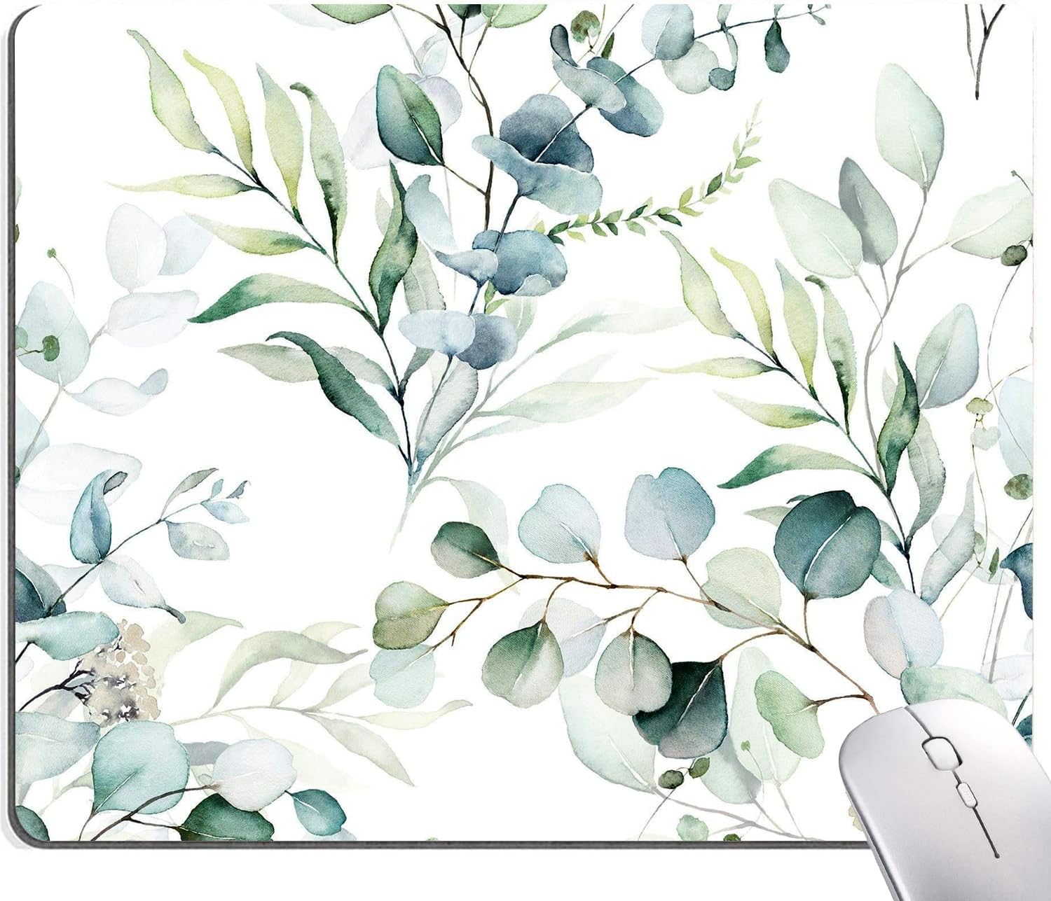 Plant Leave Mouse Pad - Square Waterproof Non-Slip Rubber Base for Office Laptop, 9.5"x7.9"x0.12" Inch (Green Grass)