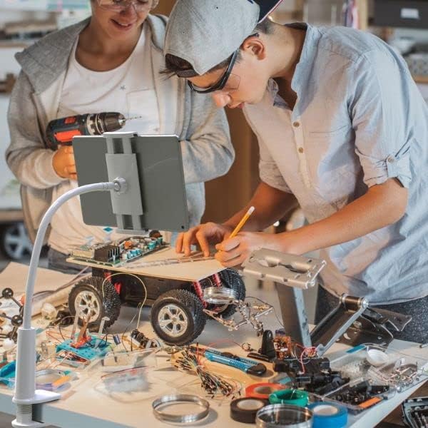 - CELLPHONE STAND DESIGN: Our phone holder boasts a unique design with a long, flexible gooseneck and a robust clamp, offering unparalleled adjustability in height and distance. Unlike regular mobile stands, this stand allows personalized positioning to meet your specific needs. The sturdy clamp ensures unmatched stability, safety, and convenience, providing a reliable solution for hands-free phone usage. Experience the flexibility and reliability of our adjustable cellphone stand.