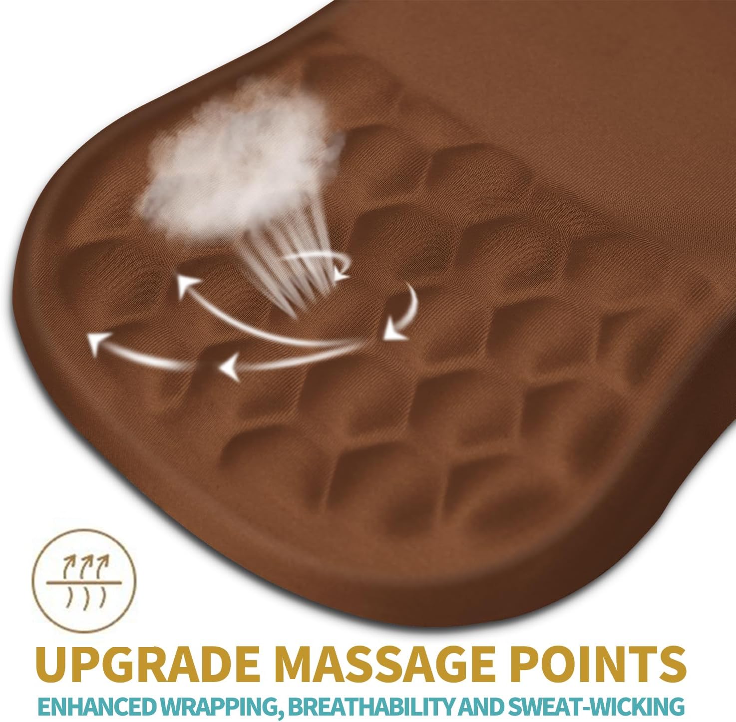 Hokafenle Ergonomic Mouse Pad Wrist Support with Massage Design, Wrist Rest Pain Relief Mousepad with Memory Foam&Non-Slip PU Base, Mouse Pads for Wireless Mouse & Desk (12x8 inch,Brown)