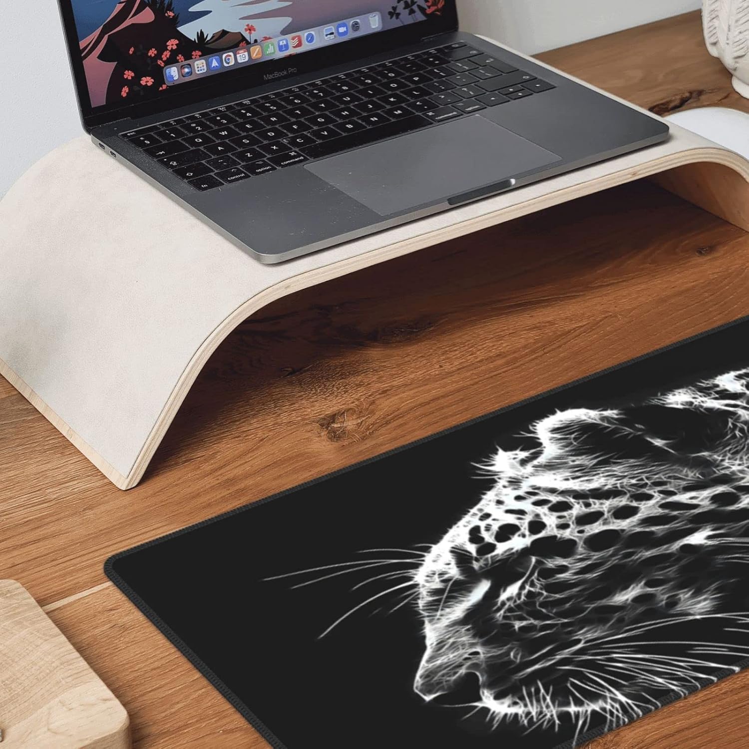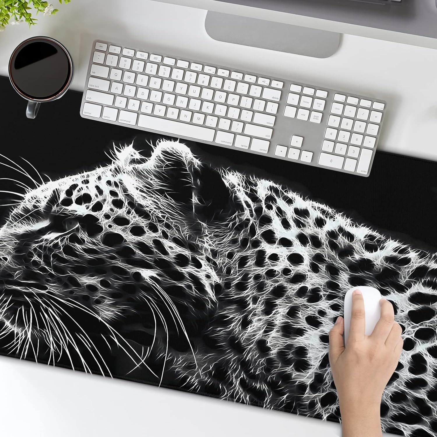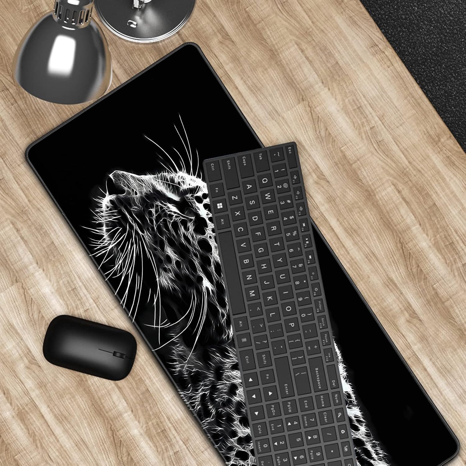 Black and White Gaming Mouse Pad 31.5 x 11.8 Inch Extended Large Mouse Pad with Non-Slip Base and Stitched Edges for Gamer Home Office, Black Leopard
