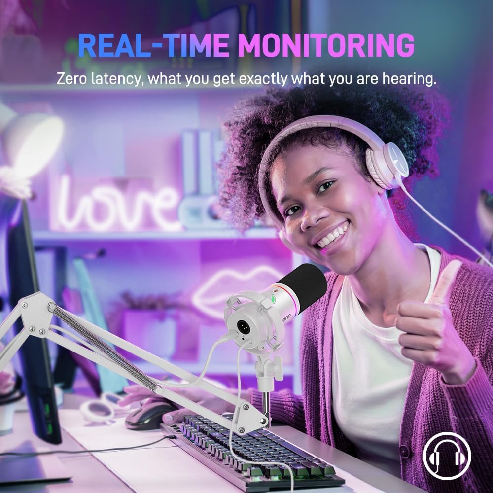 MAONO XLR/USB Dynamic Microphone, RGB Gaming Mic with Software, Mute, Gain Knob, Volume Control and Headphone Jack for Streaming, Podcasting, Recording-PD200X (White)