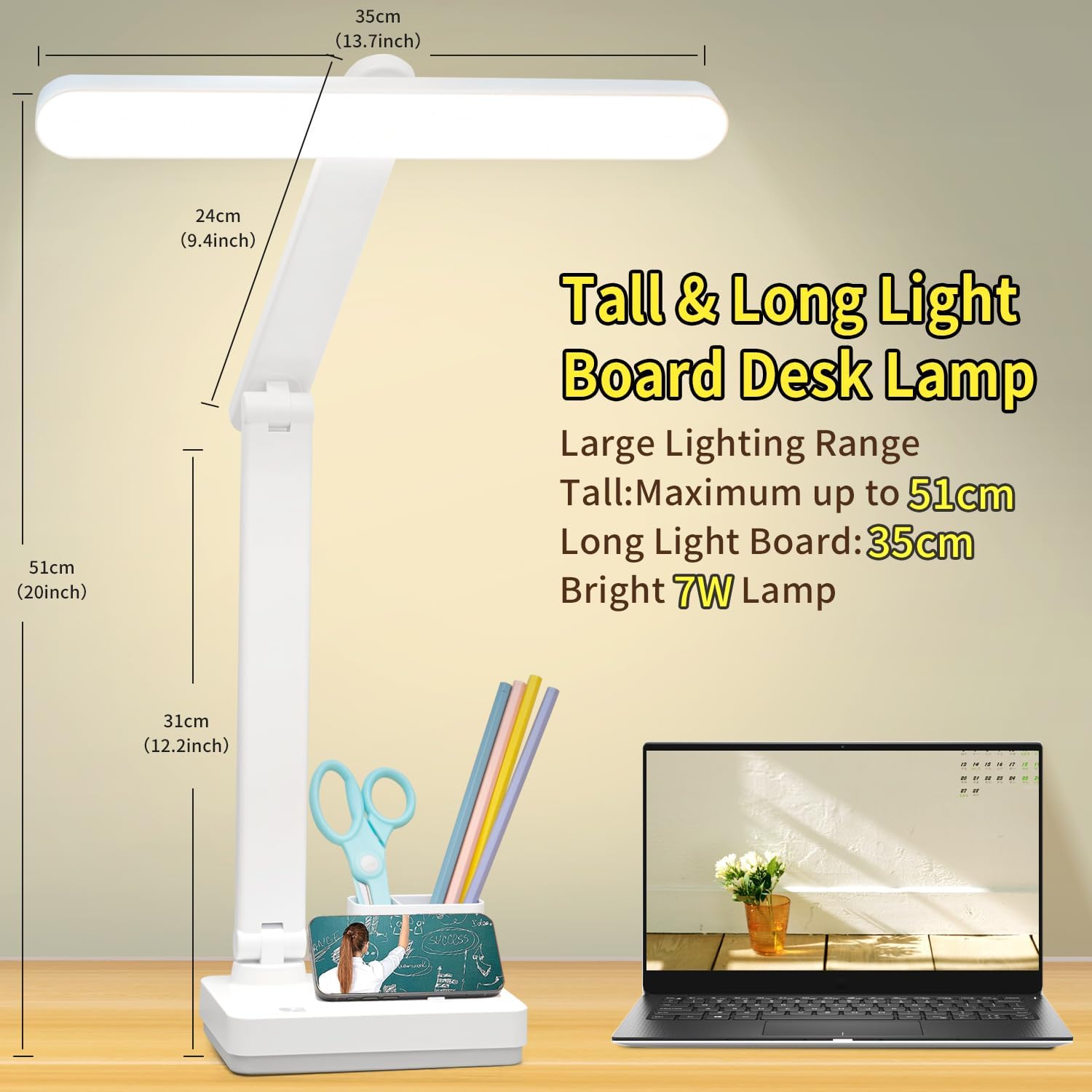 - 2.【Tall Desk Lamp, Long large light board with 50 LED】:flicker-free,no dizzy light and filter blue light, great eye caring light for reading book, study and office working.