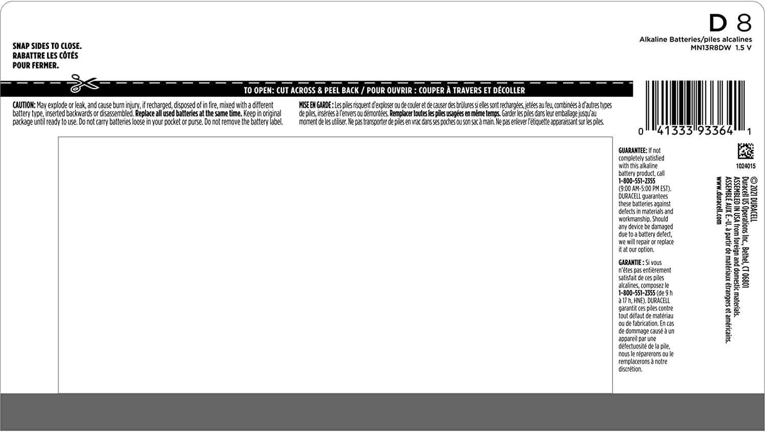 Duracell - CopperTop D Alkaline Batteries with recloseable Package - Long Lasting, All-Purpose D Battery for Household and Business - 8 Count (Pack of 2)
