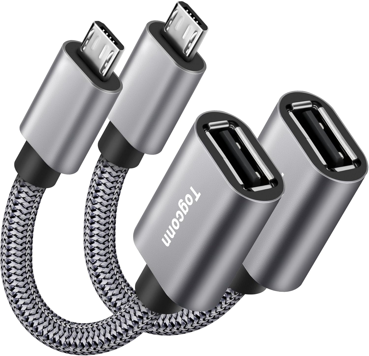 USB to Micro USB Adapter 2 Pack, Unidirectional Micro USB Male to USB Female 2.0 OTG On-The-Go Cable Converter, Nylon Braided, Aluminum Shells for S7 LG, Flash Drive, Mouse, Keyboard, Game Controller