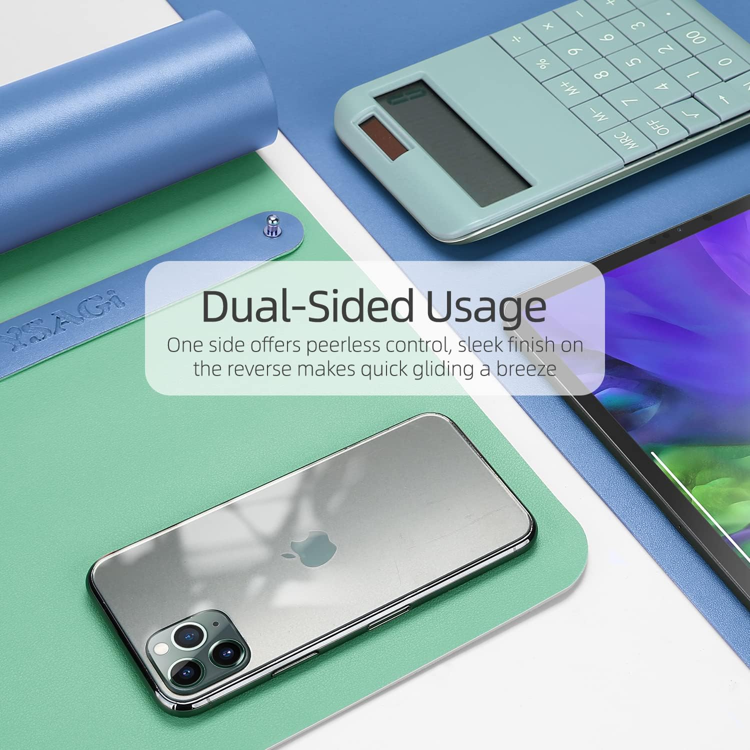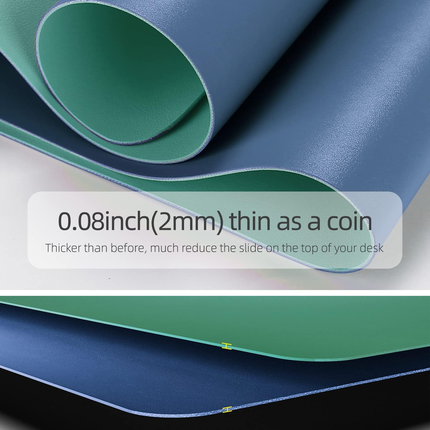 YSAGi Dual-Sided Laptop Desk Mat, 31.5" x 15.7", Waterproof Leather Writing Pad for Office and Home (Azure Blue+Green)