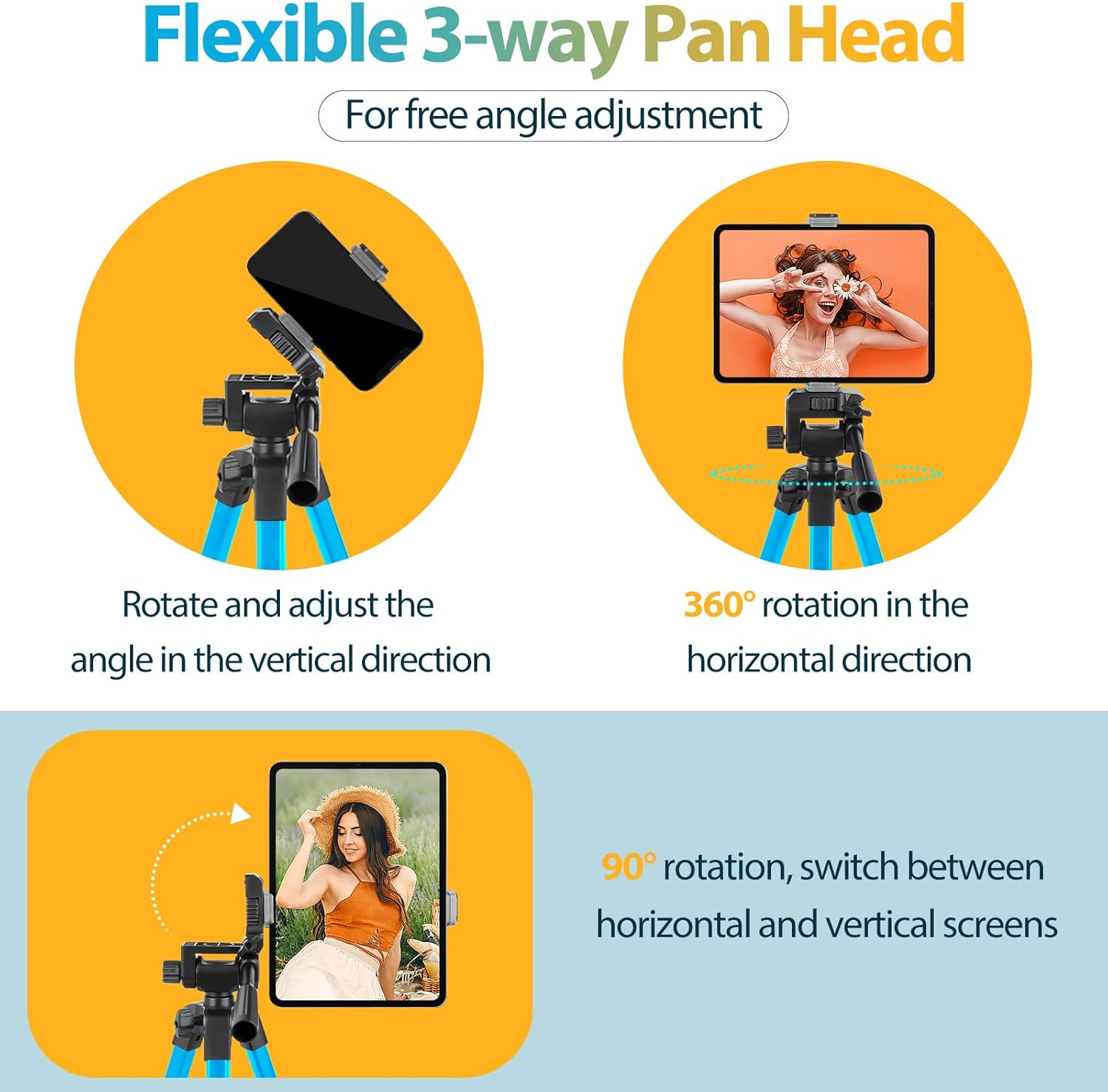 Aureday Phone Tripod Stand, 64” Extendable Cell Phone&Camera Tripod with Wireless Remote and Phone Holder, Aluminum iPad Tripod for Video Recording/Selfies/Live Stream/Vlogging (Blue)