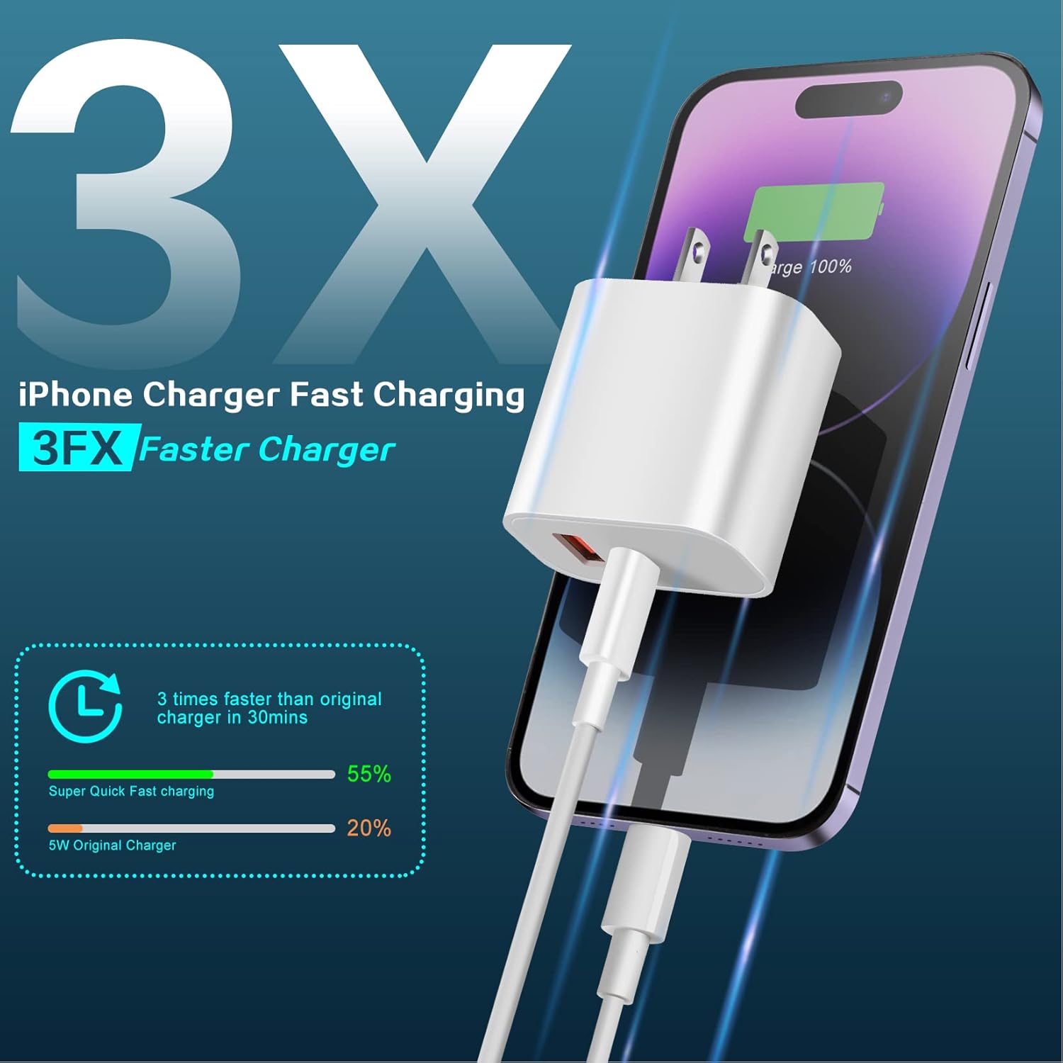 - ăDouble A/C Fast Apple iPhone Wall Charger Block Safety and ReliableăThe Double A/C Power Delivery Wall Charger for iPhone Owns a Built-in Multi-Protection System,Avoiding Over-Voltage,Over-Charge,Over-Heat,etc.USB C to Lightning Cable Cord Match the Current Required by the Device Automatically,Charges Your iPhone Device Fast,Safely and Steadily.Tangle-Free 6 Feet Length is Convenient For Usage While Charging and Sync at Home/Office/Travel in Bed,Hotel Rooms and More.
