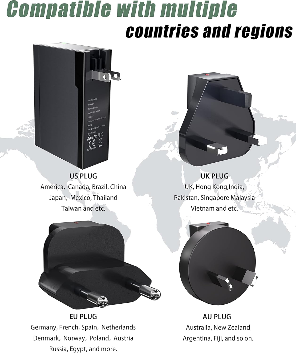 - ăIdeal for TravellingăThe EU, US, UK, and AU switchable plugs make the USB C charging block very helpful and suited for worldwide travel, and it supports worldwide universal voltage of 100V-240V. This travel charger will be a great option if you carry a lot of gear, or you are traveling with companions.