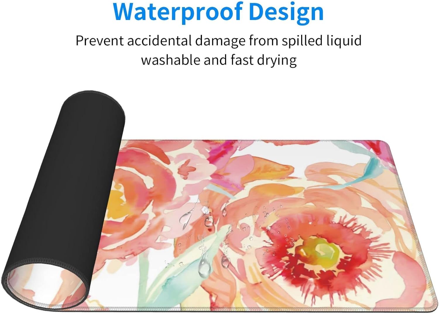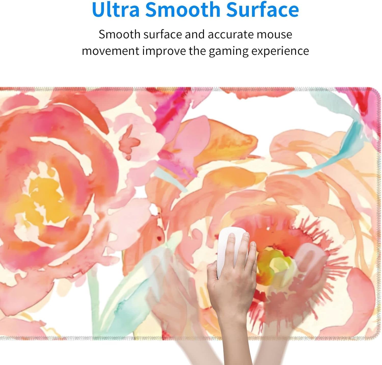 Pink Flower Large Mouse Pad Extended Gaming Mousepad 31.5 x 11.8 Inch with Anti-Slip Rubber Base Cute Office Decor Women Girls Computer Accessories Home Office Supplies