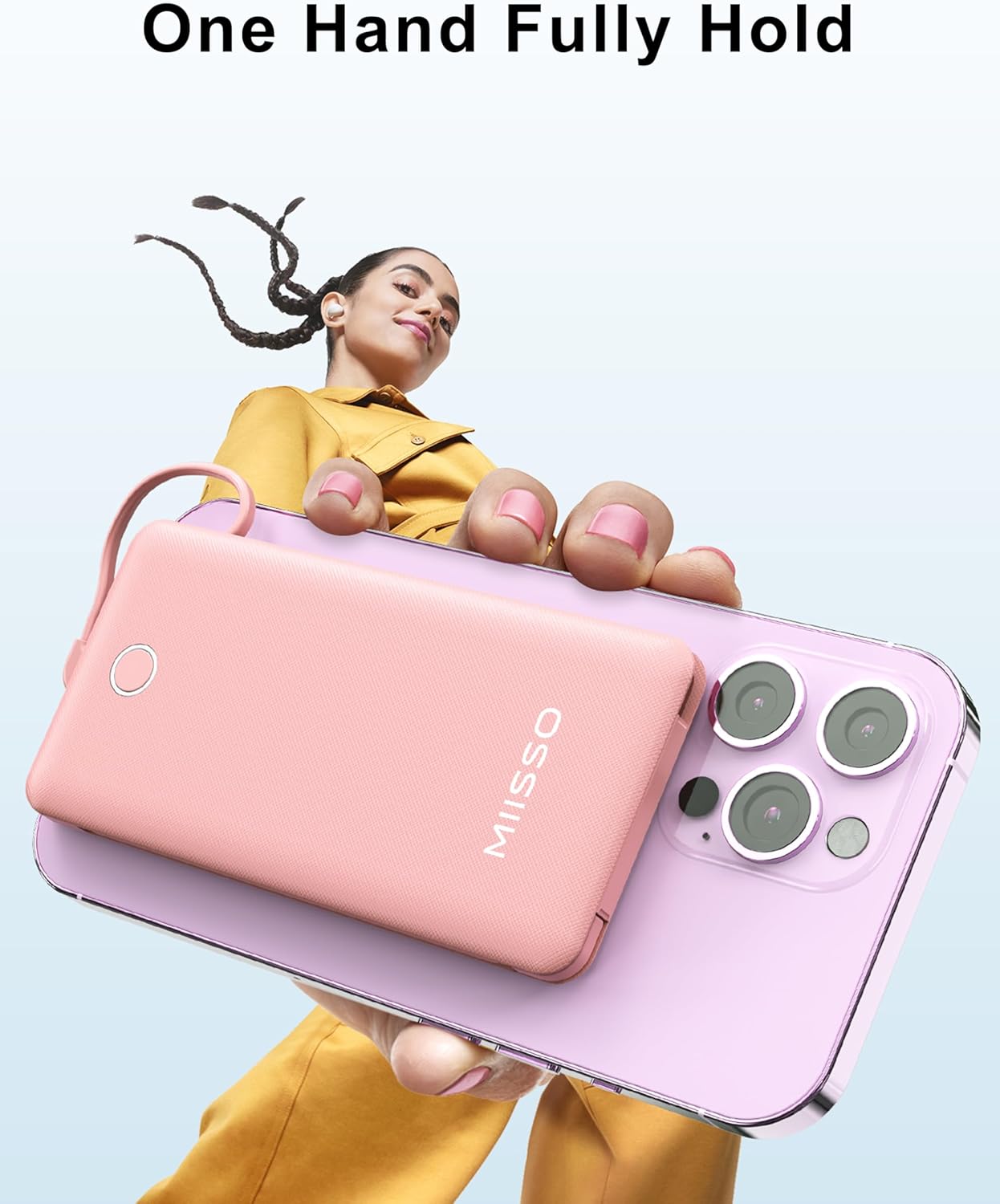 - Universal Compatible with Most Devices: As portable phone charger builts in 2 cables, it is widely compatible with most cellphones or tablets. Widely compatible with iPhone 16, 15, 14, 13, 12, 11, 8, 7, AirPods, Samsung S24, S23,S22, S21 and other andorid USB C or Micro USB phones, tablets