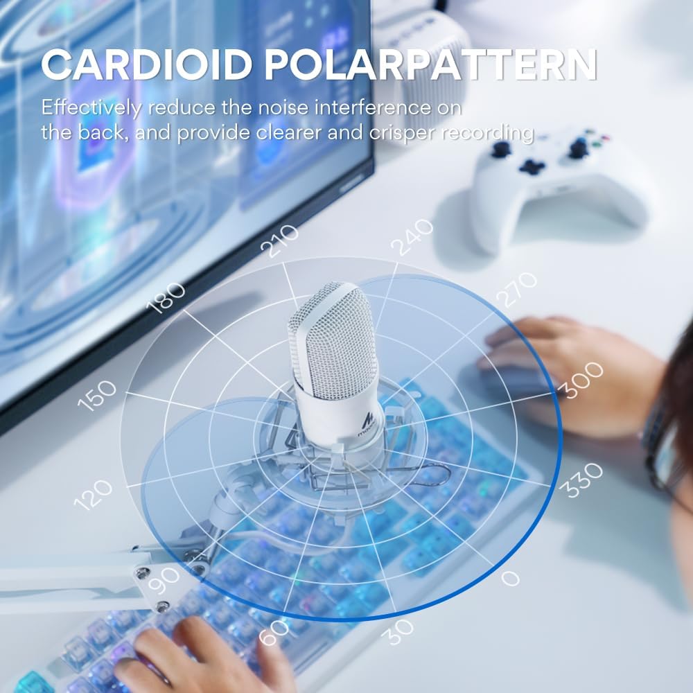 MAONO USB Microphone, 192kHz/24bit Plug & Play PC Computer Podcast Condenser Cardioid Metal Mic Kit with Professional Sound Chipset for Recording, Gaming, Singing, YouTube, AU-A04 White