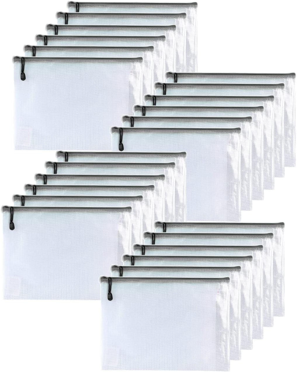 Oaimyy-24PCS-5 x 7"-Mesh Zipper Pouch, Plastic Zip File Folders Puzzle Bags for Organizing,Office Supplies,Travel,Home Storage-Black