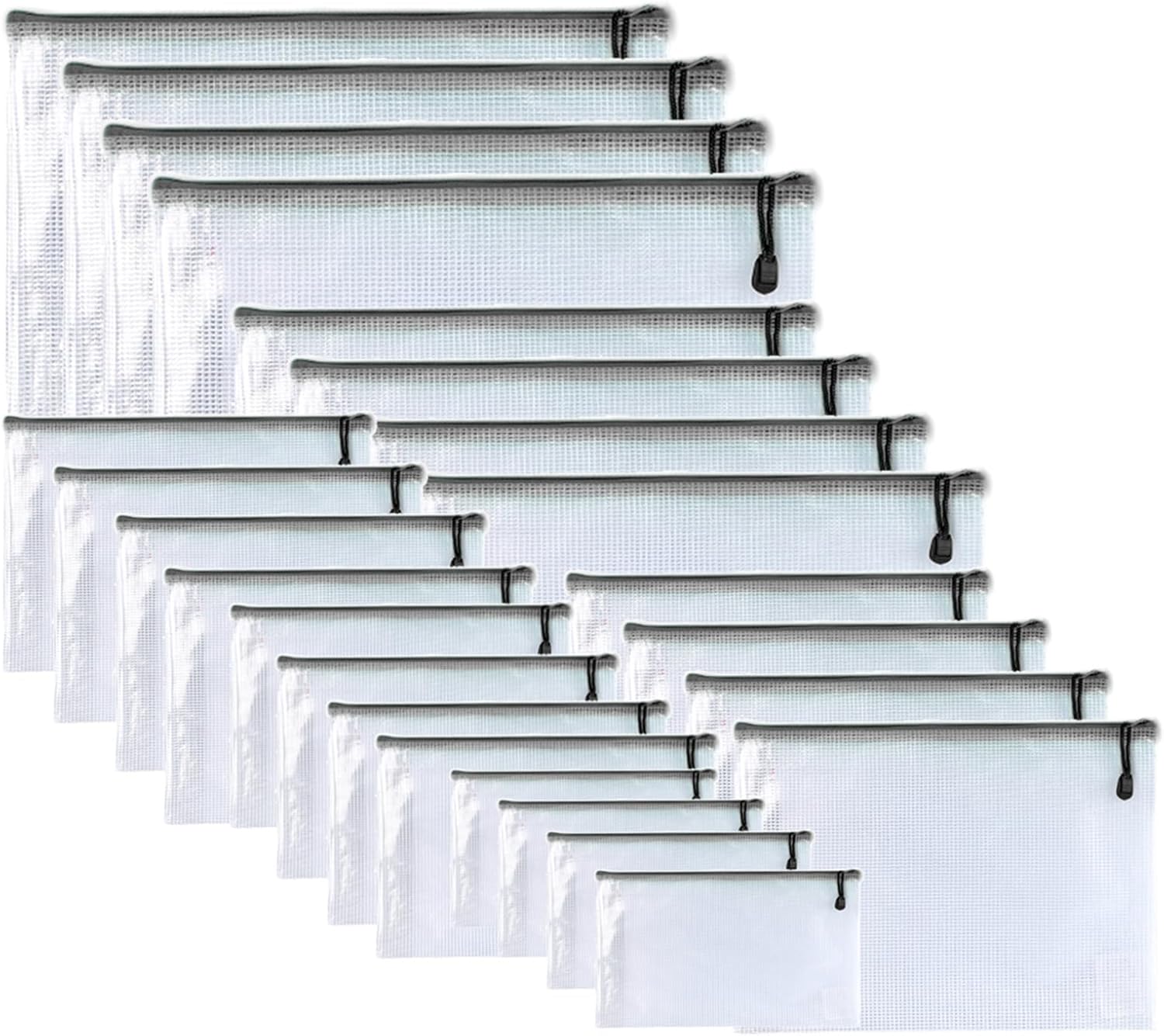 Oaimyy-24 Pcs Plastic Mesh Zipper Pouch Document Folders Bag Zip File Folders for School Office Supplies, Travel,Puzzles Games Organizing Storage-Black (MultiSize)