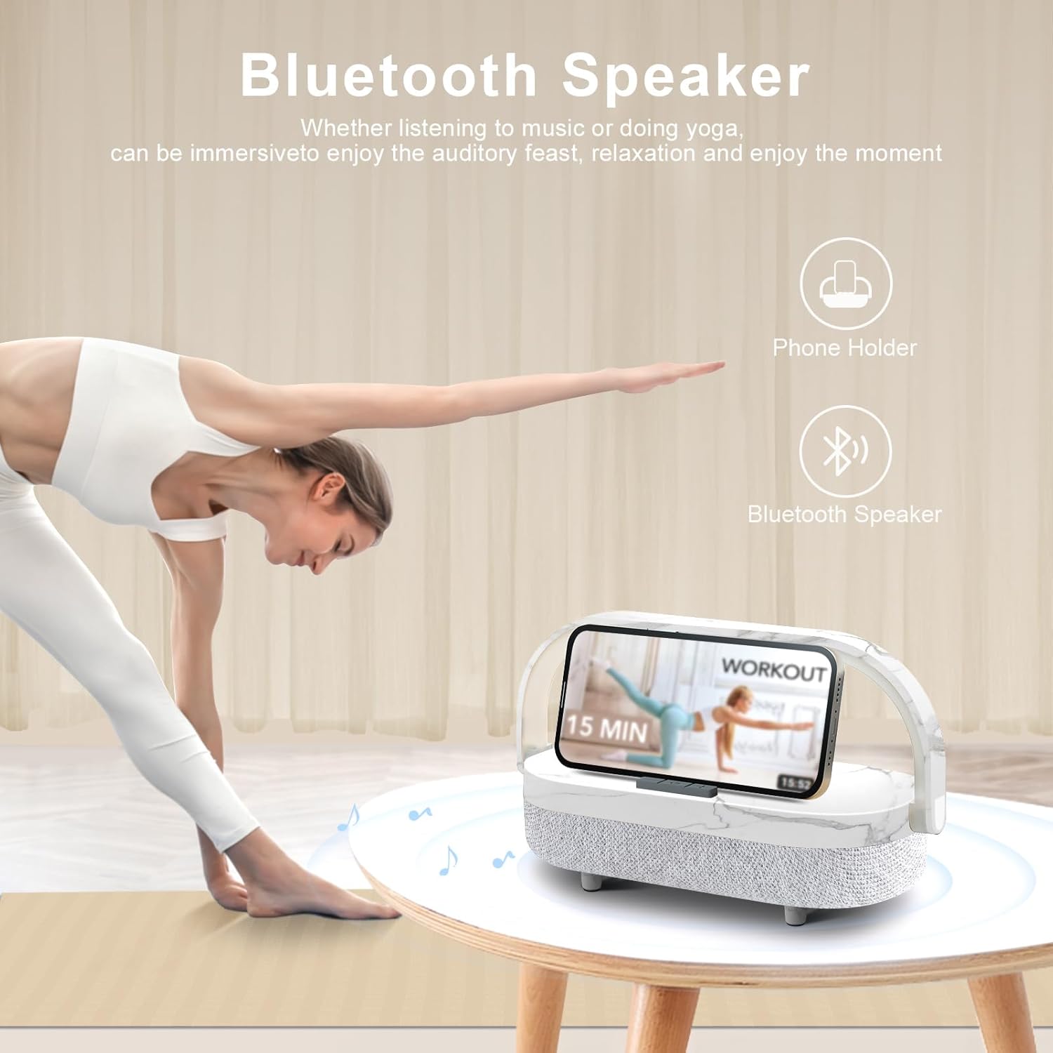 - âĄăBluetooth Speaker with TWS FunctionăSmart music bedside lamp with wireless charger with Bluetooth 5.0, 33 feet max transmission distance. Pair two speakers for a stereo setup with TWS technology. The built-in 5000mAh battery is superbly long-lasting.