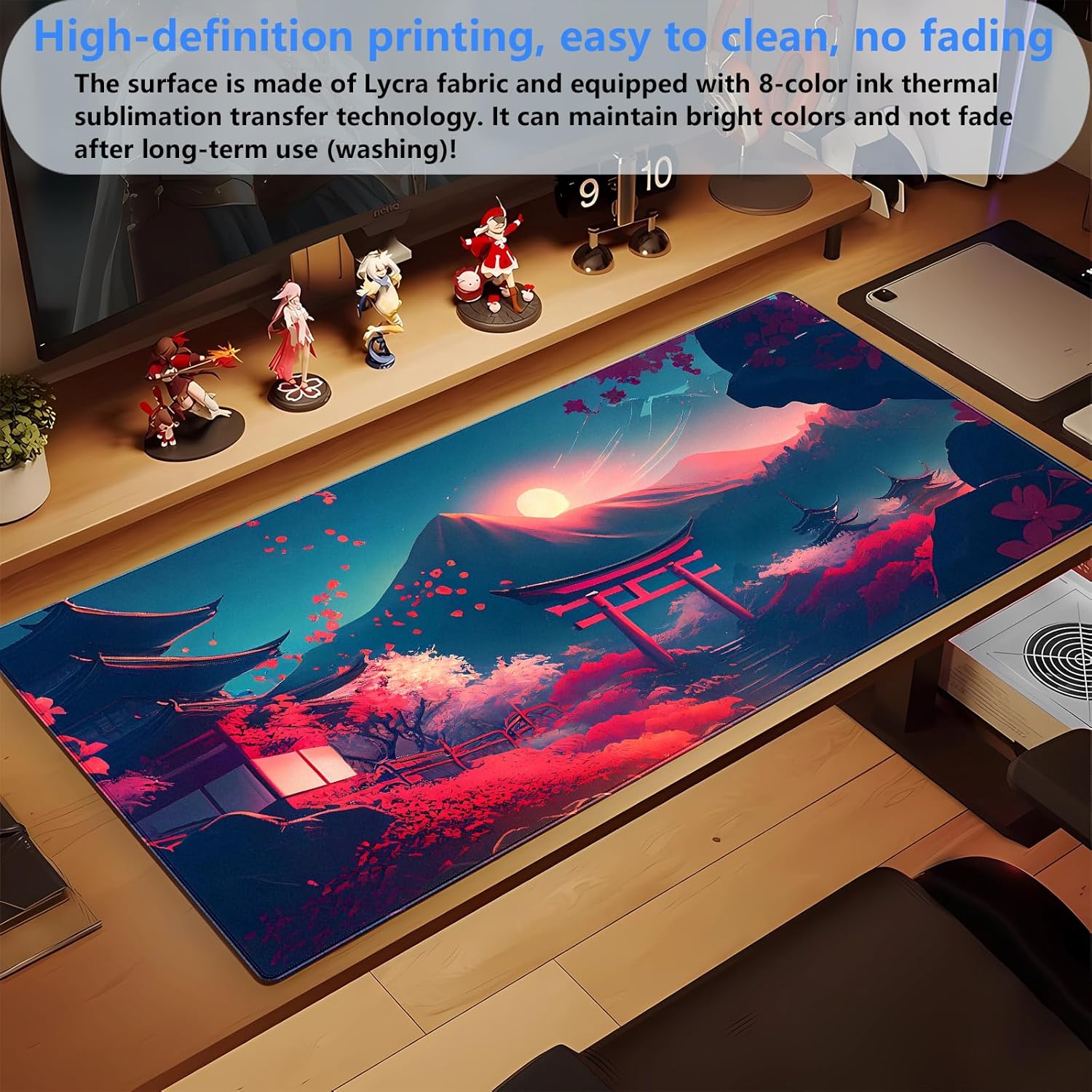 Japanese Anime Mouse Pad - Pink Sakura & Full Moon Design Gaming Desk Mat, XL Large (31.5"x15.7") Keyboard Pad for PC Laptop Office Decor