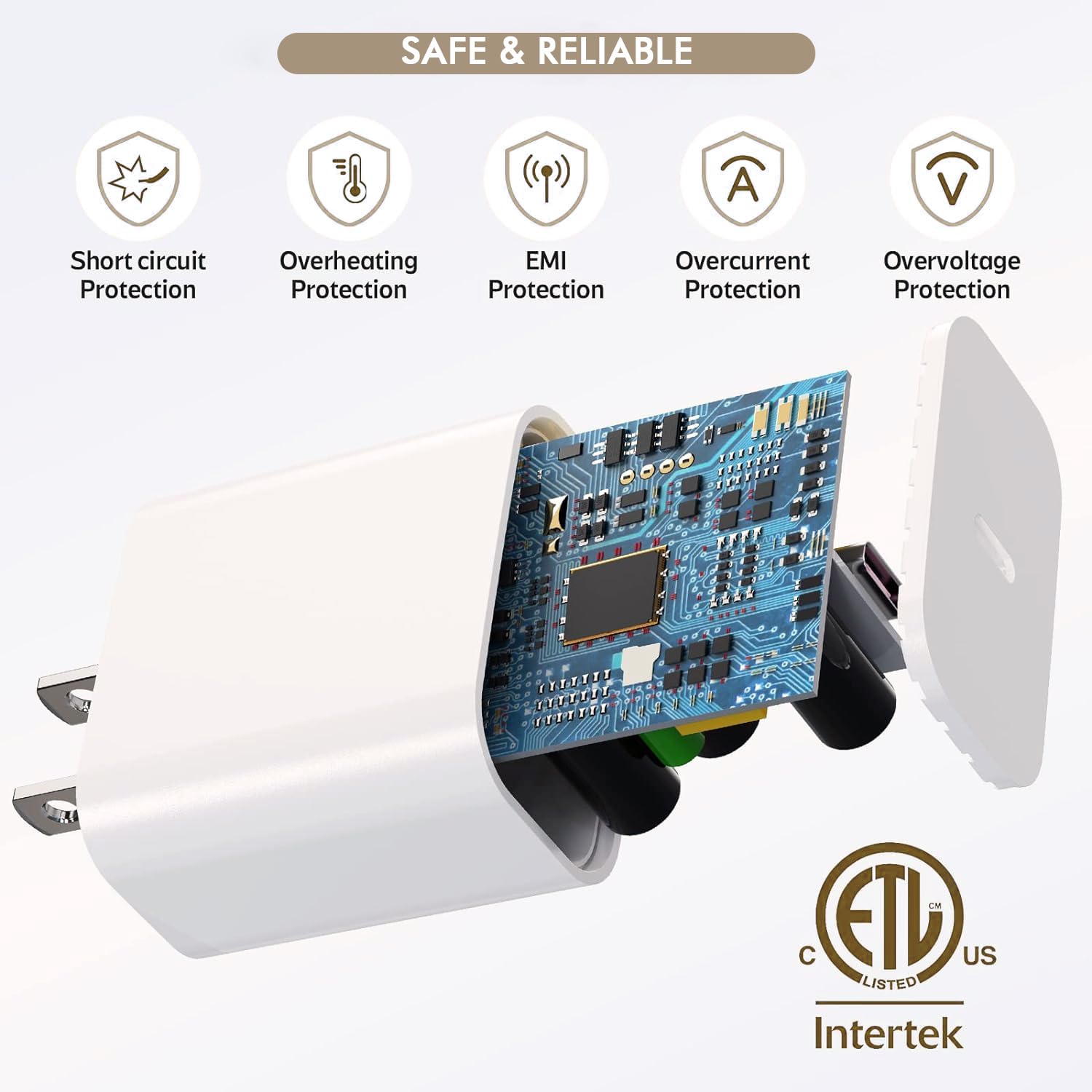 - 【Excellent safety guarantee】The usb c charger block adopts IC chip technology and is equipped with an intelligent central control module, which can ensure that there will be no overheating, overvoltage or overcurrent during the charging process. At the same time, type c charger fast charging intelligently adjusts the charging power when the device is fully charged to avoid overcharging. The usb c charger ensures your charging safety and the health of the device's battery