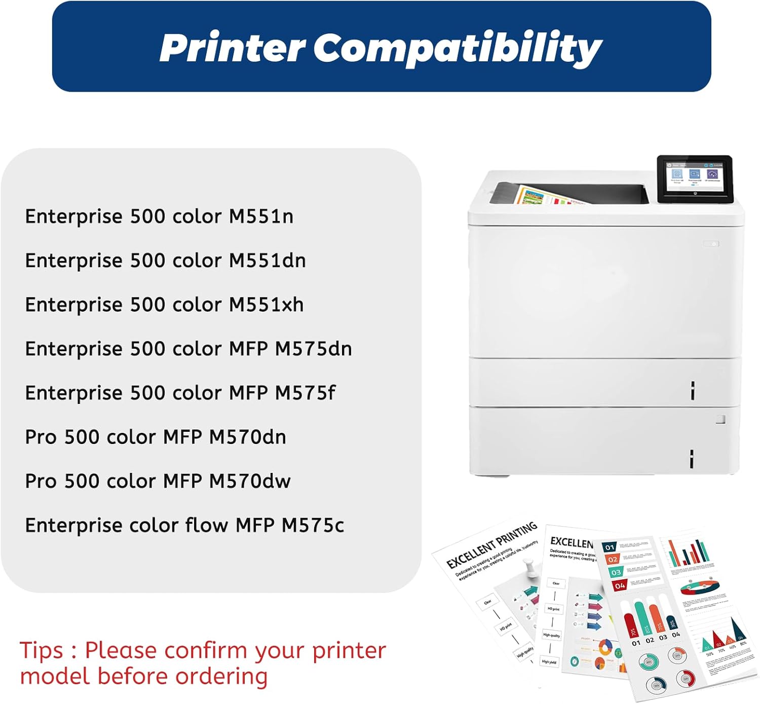 - ăCompatible ModelsăCompatible for hp laserjet 507a black replacement for Laserjet enterprise 500 color m551 m551dn m551n m551xh m570dn m570dw m575c m575dn m575f Printer