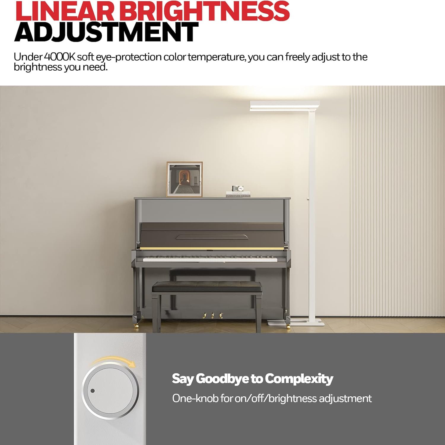 - 【4000K Natural Daylight for Applicable Scenes】 The 4000K color temperature of bright floor lamp is like the morning light at 10:00 GMT, which is not dazzling when viewed directly.With the bright light and generous appearance, the floor lamp can be placed in the living room, piano room, warehouse, bedroom to add fashinable to your house. It is a great choice as a reading light or an office lamp.