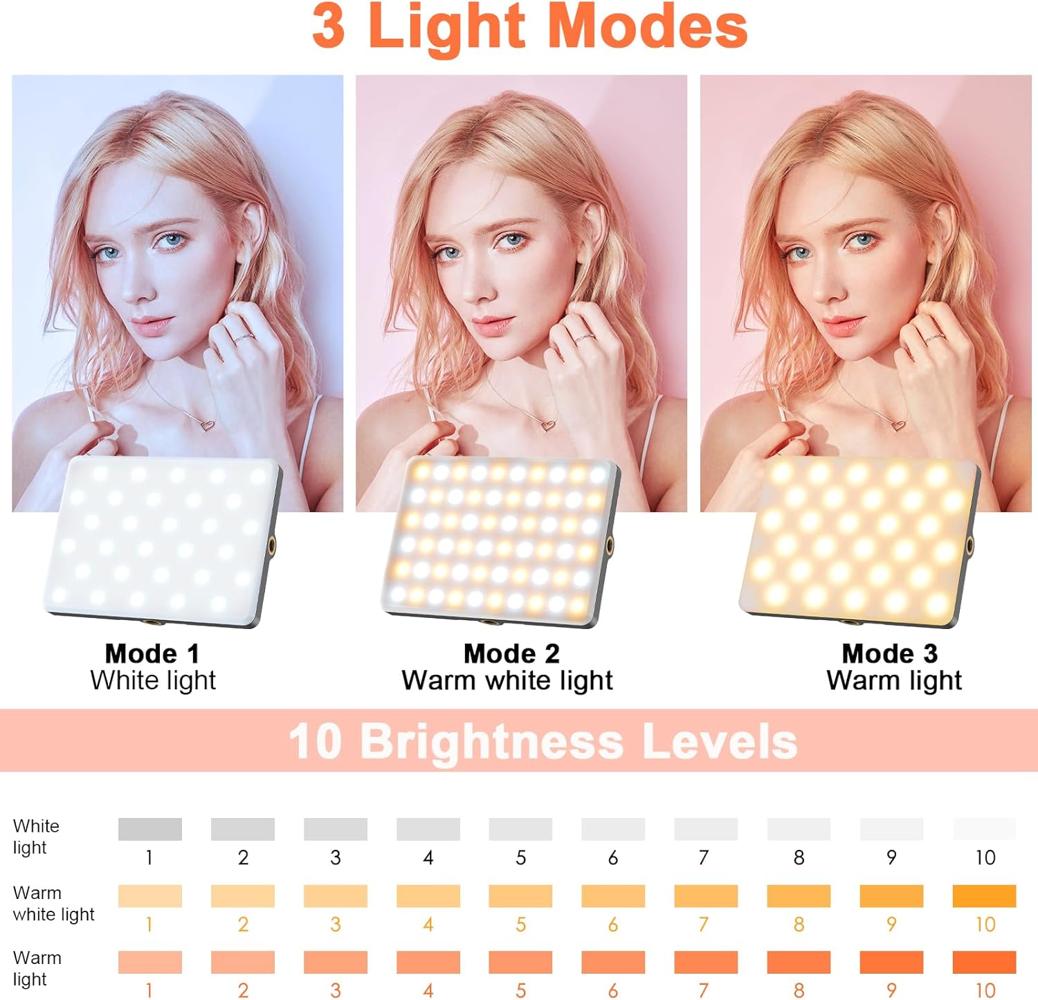 - 【Portable Pocket Size】LED selfie light size: 4''x2.55'', weight only 101g, with compact size. You can carry it around in your pocket or backpack, and it's also great for traveling. The lightweight photo light can be a perfect gift for your friends and family members who love to take photos.