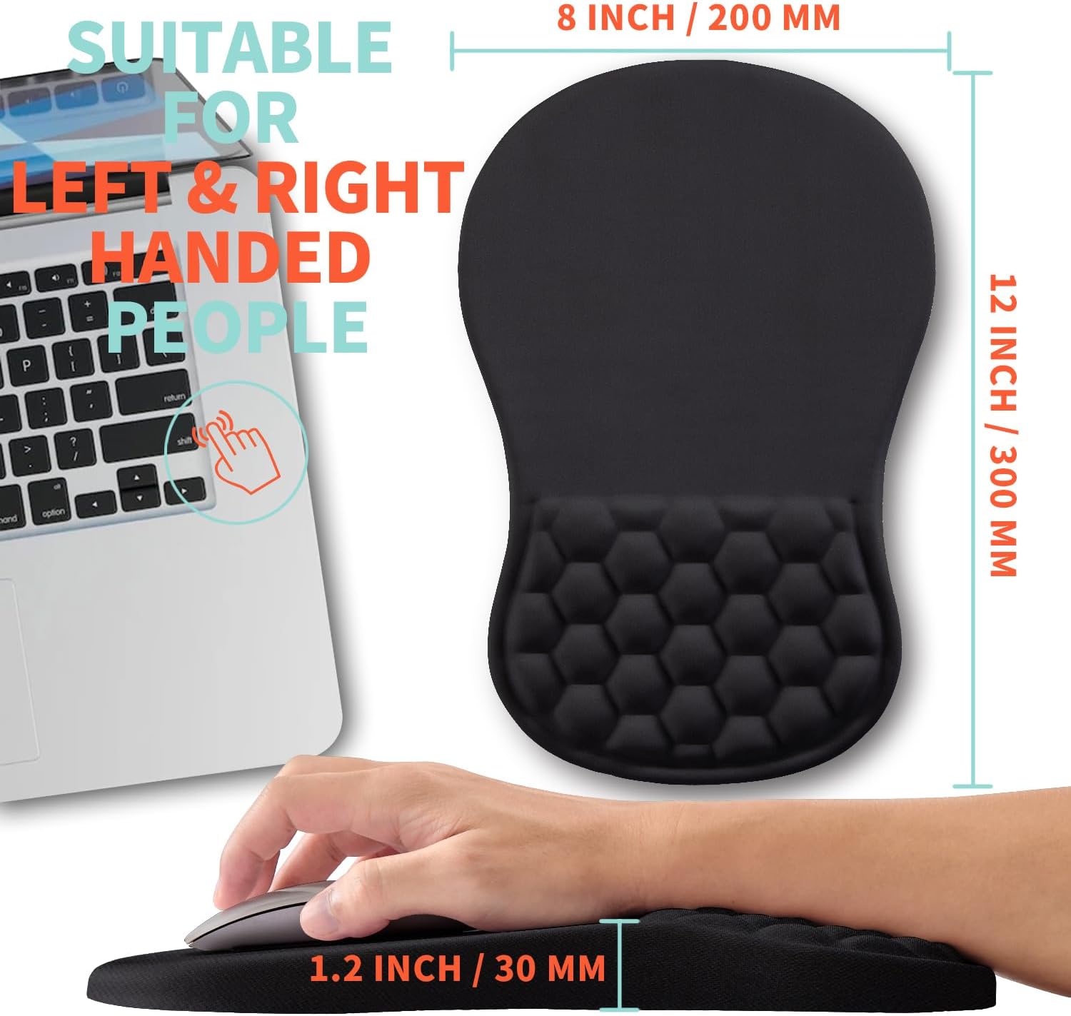 Ergonomic Mouse Pad Wrist Support with Memory Foam Massage Bulge, Carpal Tunnel Pain Relief Mousepad Wrist Rest for Mouse(12x8 inch, Black)