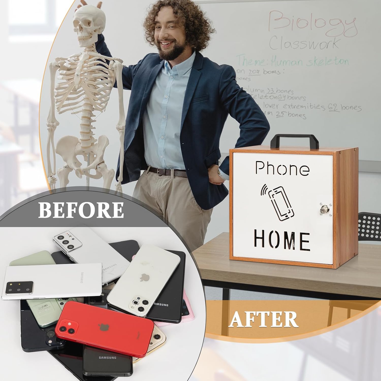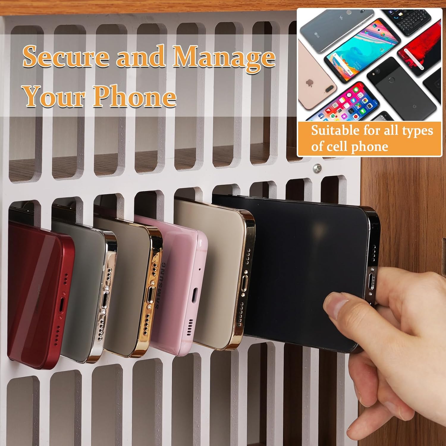 - High Quality Material: The classroom phone holder is made of high quality wood, stable and enduring, strong and practical. It can hold up to 33 cell phones to meet your needs.There are altogether two keys to the safe. Take care of your keys, don't get them to lost.
