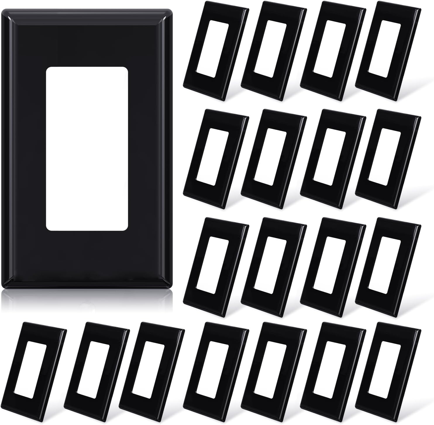ELEGRP 1-Gang Screwless Decorative Wall Plates, Standard Size Unbreakable Thermoplastic Faceplate Cover for Decorator Receptacle Outlet Switch, UL Listed (20 Pack, Glossy Black)