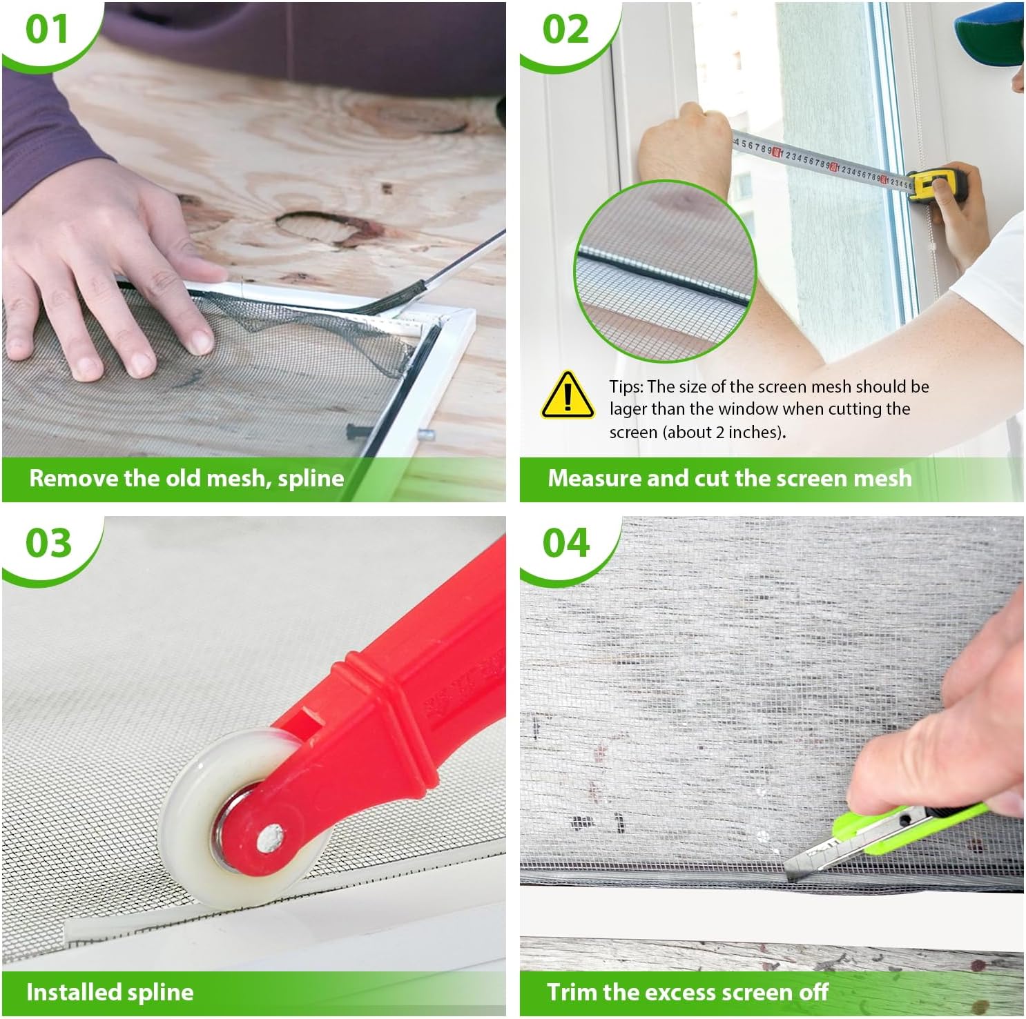 - Durable: The replacement window screens is made of upgraded fiberglass, with 18 x 16 weeve and fine mesh design, flame retardant, washable and non-deformable, the screen replacement kit can last up to 5 years