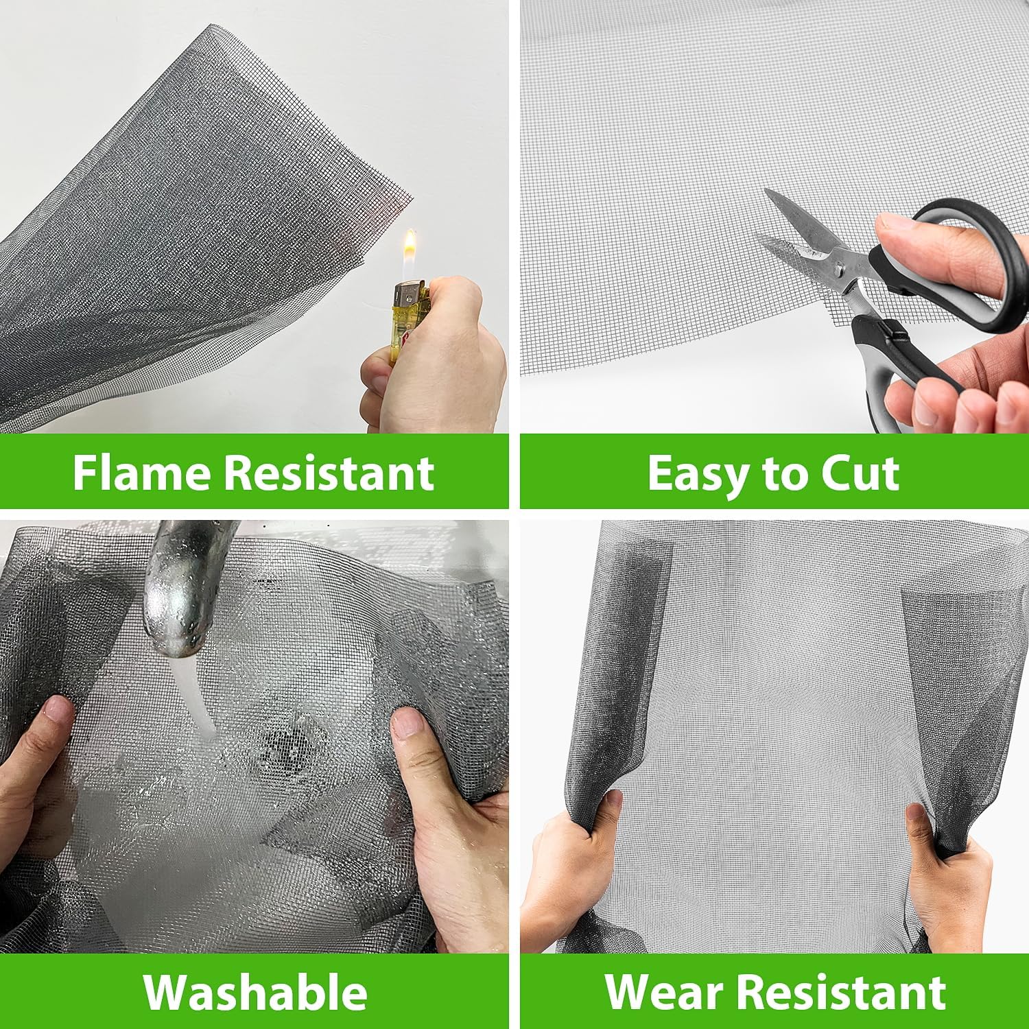 - Durable: The replacement window screens is made of upgraded fiberglass, with 18 x 16 weeve and fine mesh design, flame retardant, washable and non-deformable, the screen replacement kit can last up to 5 years.