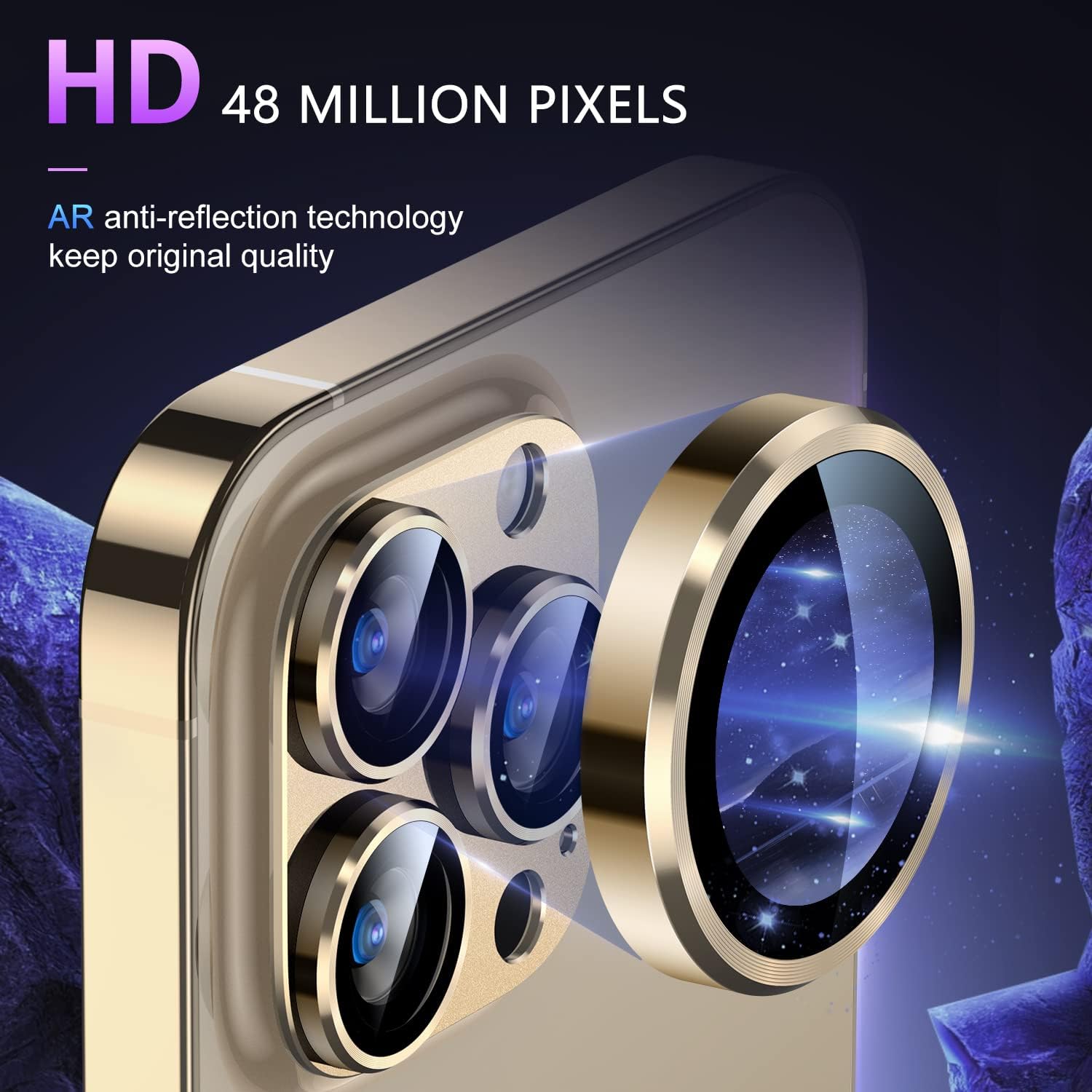 Uyiton for iPhone 14 Pro/iPhone 14 Pro Max Camera Lens Protector, [Drop Protection] 9H Tempered Glass Camera Cover screen Metal Ring Case Friendly Scratch Resistant Easy to Install Gold