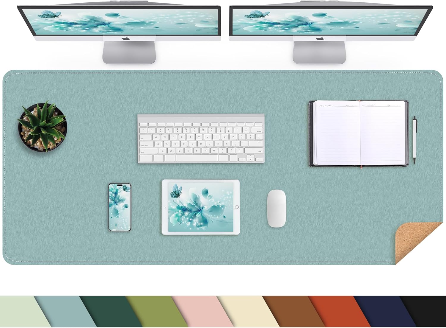 Leather Desk pad Protector, Large Desk mat with Natural Cork & PU Leather,Mouse pad,Non-Slip Office Desk Mat,Waterproof Desk Writing Pad for Office and Home (47in*23.7in, Light Blue)