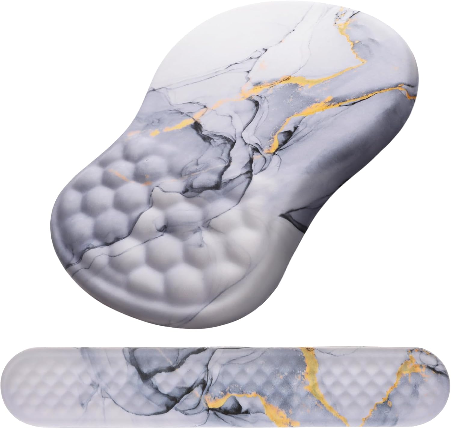 Mouse Pad Wrist Support, Laokiiy 2 in1 Keyboard Wrist Rest+ Ergonomic Mouse Pad, Non-Slip Wrist Rest for Computer Keyboard, Made Easy Typing & Relieve Wrist Pain(White Gold Gray Marble)