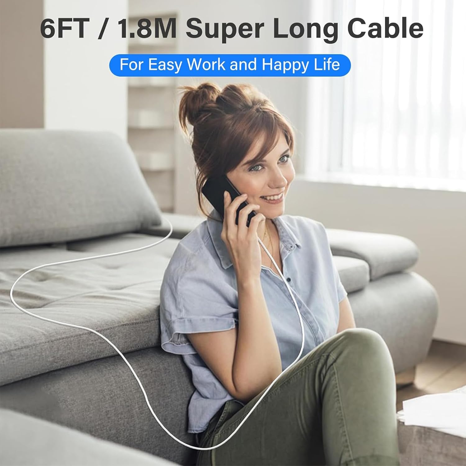 - 6FT iPhone 15 Charger Cable Cord: Made with the original official Chip, this 6ft long iPhone 15 charger USB C cable ensures 100% compatibility with your new 6Feet length is convenient for usage while charging and syncing at home/office/travel in bed, hotel rooms, and more