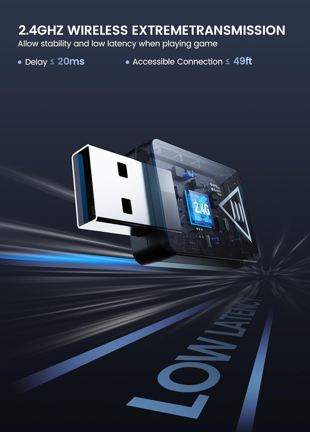 - 2.4GHz Ultra-Low Latency: Better than bluetooth, the E1000WT wireless gaming headset with USB dongle, acheive stable and lossless sound quality transmission with 2.4 GHz lossless wireless technology (<35 ms delay), which eusures an immersive lag-free wireless gaming experience and gives you a competitive edge in fast-paced games.