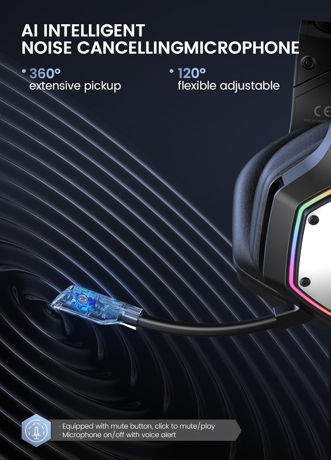 - Noise Cancelling Microphone: Built in AI noise cancelling chip, the pc headset isolates voice from the noise and accurately eliminates up to 96% of distracting background sound, delivers natural and clear sound in-game chats to your teammates, helping your team made that game easily.