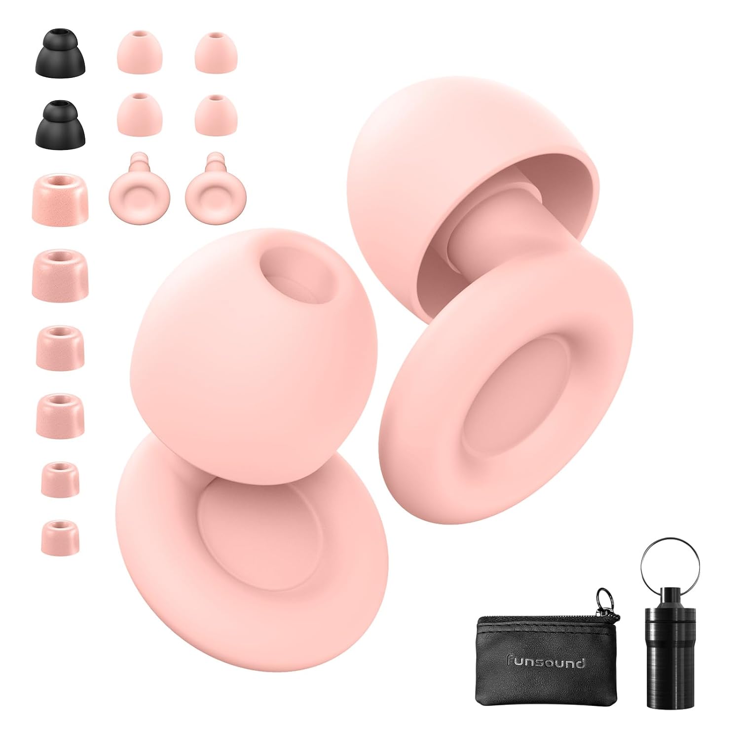 Ear Plugs for Sleeping Noise Reduction Reuseable, Concerts, Focus, Travel, Work, High Fidelity – 7 Pairs Eartips – Flexible Soft – Touch – NRR of 24 and 27 dB Noise Cancelling (Pink)