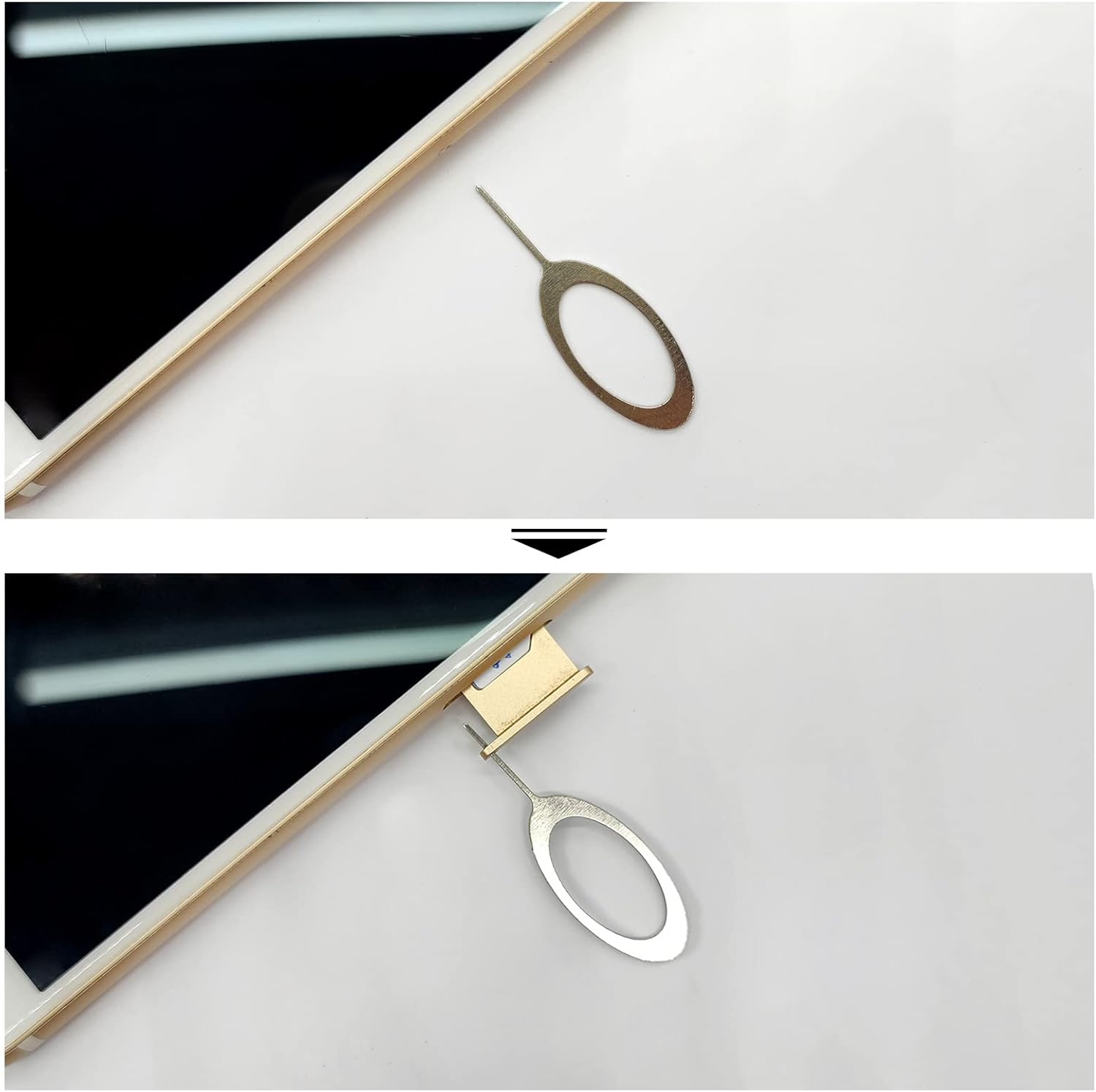 - The SIM card removal tool is made of high quality stainless steel, not easy to rust, strong, durable, light weight and can be hung on the key ring.