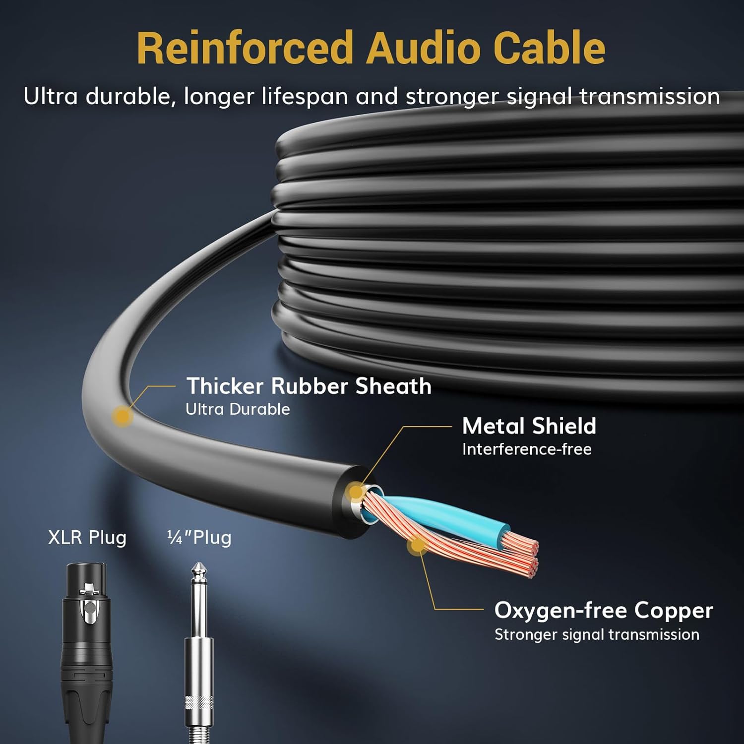 - Full Compatibility: Come with a 14.75ft (4.5m) XLR to 1/4”(6.5mm) cable, this dynamic microphone seamlessly compatible with a range of devices featuring 1/4”(6.5mm) mic inputs. From KTV audio setups to DVDs, amplifiers, mixers, tour buses, and speakers, it's your versatile audio companion. Plus, its standard-sized mic body easily fits onto a standard microphone stand.