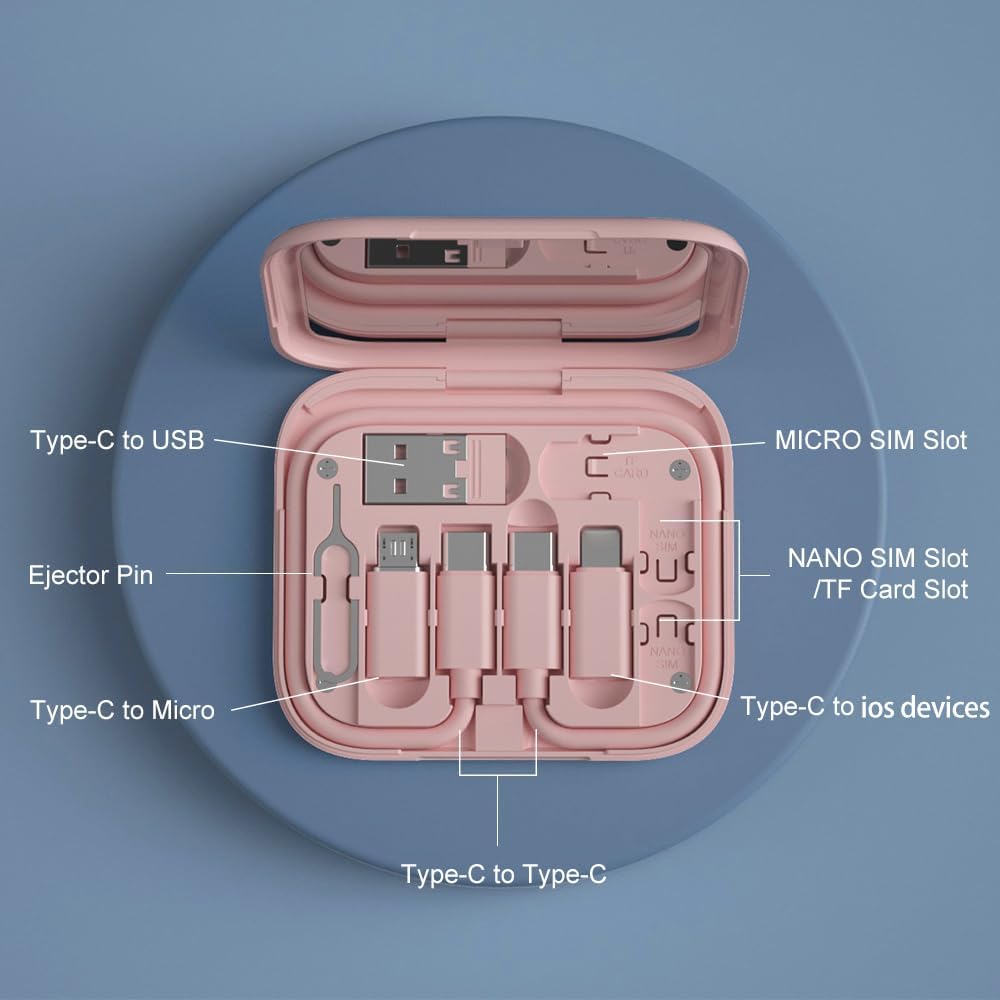 - SIM CARD HOLDER: This USB C male cable case also has a slot to securely store your SIM cards and a SIM extractor to pop it out when you need to switch SIM cards on your phone, travel with ease and convenience with this multi-charging cable case