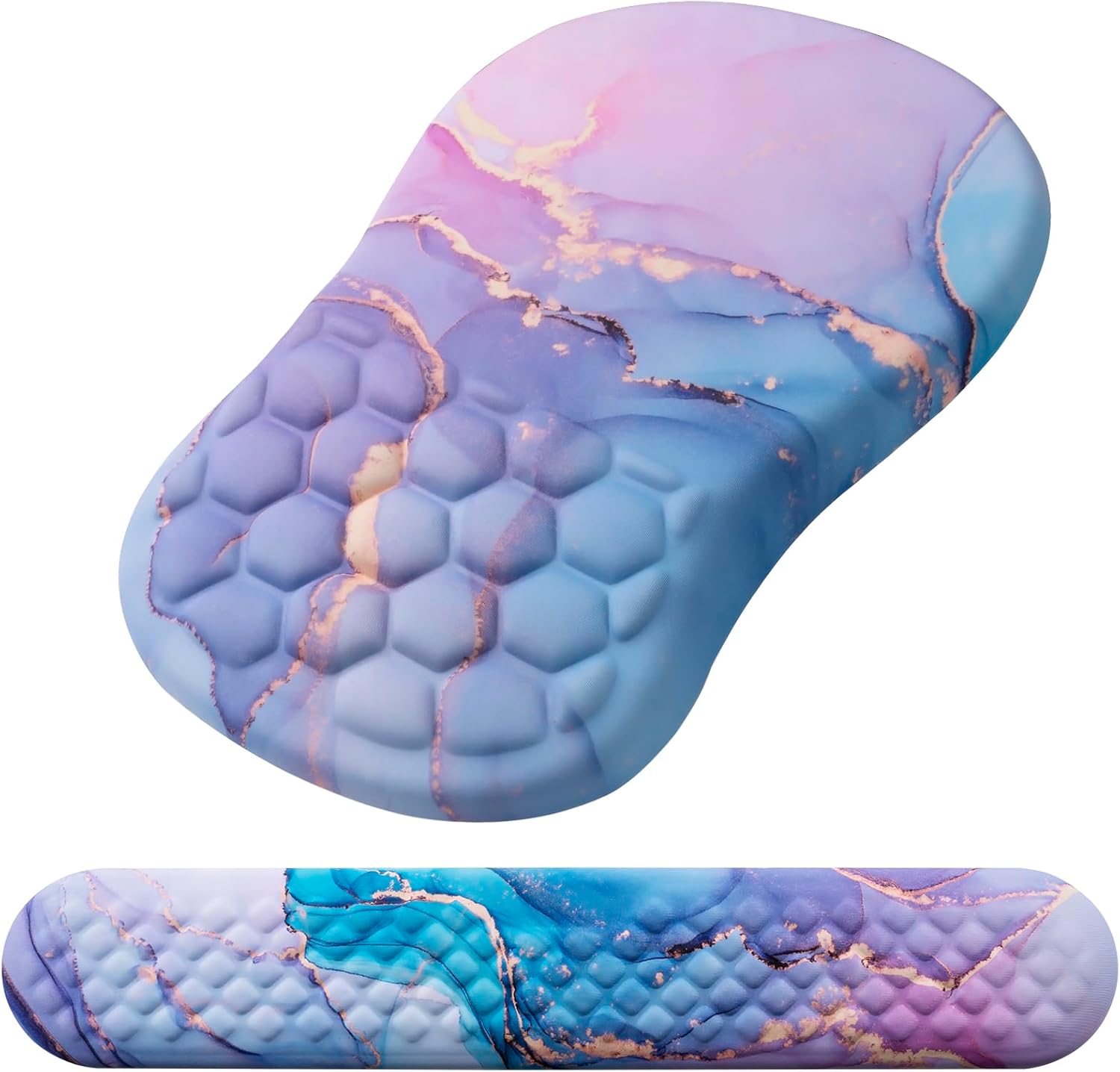 Mouse Pad Wrist Support, Laokiiy 2 in1 Keyboard Wrist Rest+ Ergonomic Mouse Pad, Non-Slip Wrist Rest for Computer Keyboard, Made Easy Typing & Relieve Wrist Pain(Blue Pink Marble)