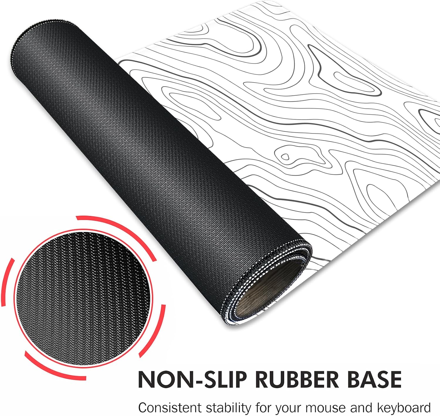 Gaming Mouse Mat Forest Background Pattern XXL XL Large Mouse Mat Long Extended Mouse Pad Desk Mat Non-Slip Rubber Mice Pads Stitched Edges Thin Pad (Topographic Map White)