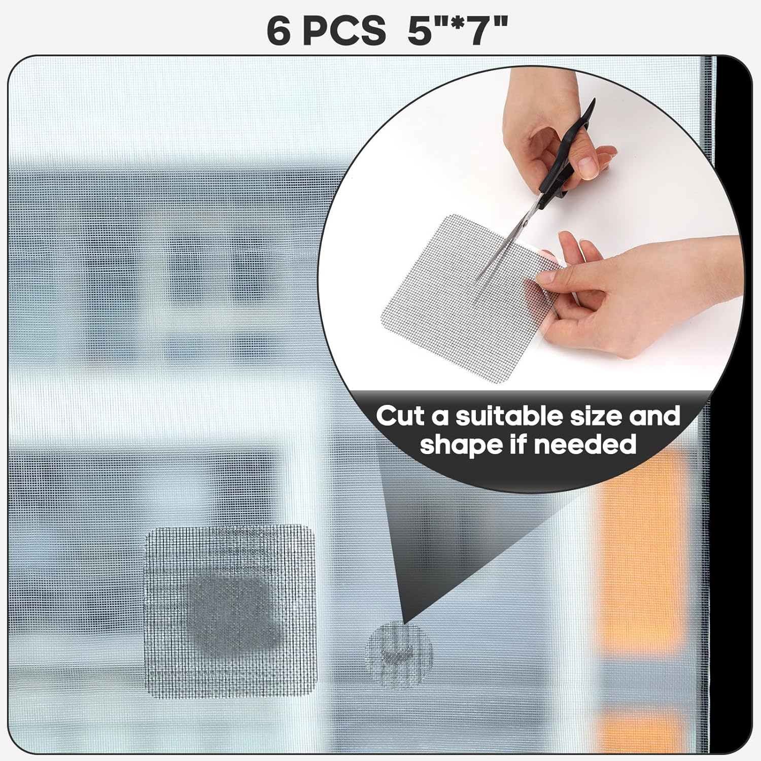 - Clippable and Save money: The size of the screen repair tape is 5 IN X 7 IN, you can cut a suitable size and shape or use more of them to repair a larger hole. No need to spend a lot to replace the entire screen mesh then
