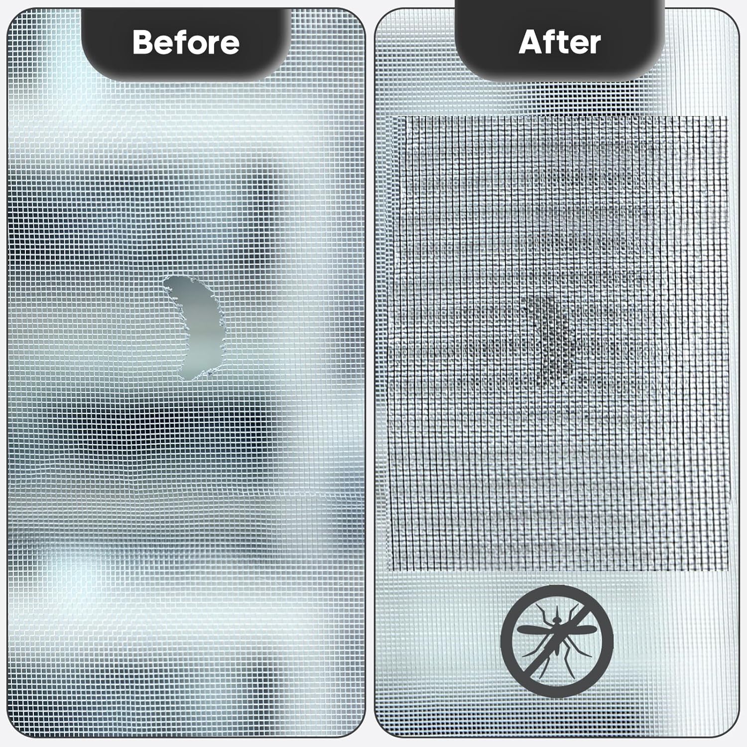 - Easy and Fast: No tools needed and only seconds you're finished your repair! Clean the screen mesh and then use the screen patch to cover the tear or hole you want to repair. Fast and easy way to repair window screens and screen door