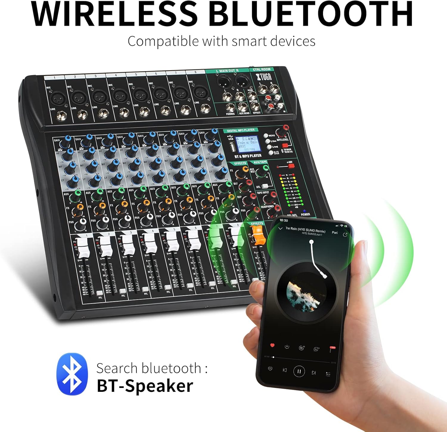 - Multi Devices Compatibility:This portable 8 channel mixers has Bluetooth for wireless streaming and use it as an input to mix signal with other input channels. It works with IOS, Android, Tablet and MP3 Player