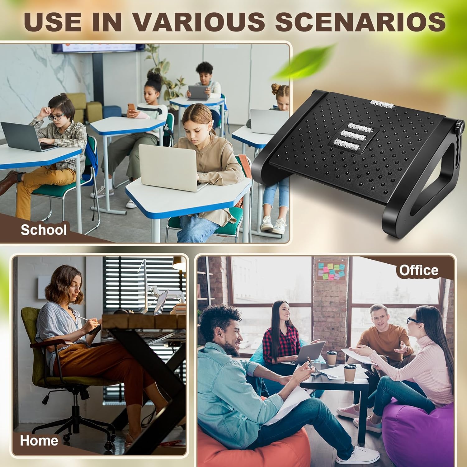 - Ideal Comfort and Versatility: experience comfort at your office or home with the adjustable foot rest for under desk; Its 6 adjustable height settings allow you to find the ideal angle for your comfort; This foot rest does more than just providing a soft place for your feet, it elevates your workstation experience